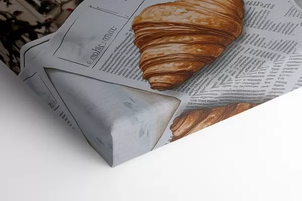 Paveikslas Rytinė kava su kruasanais, miesto gatvė, architektūrinis, aliejinis stilius Nr s43891