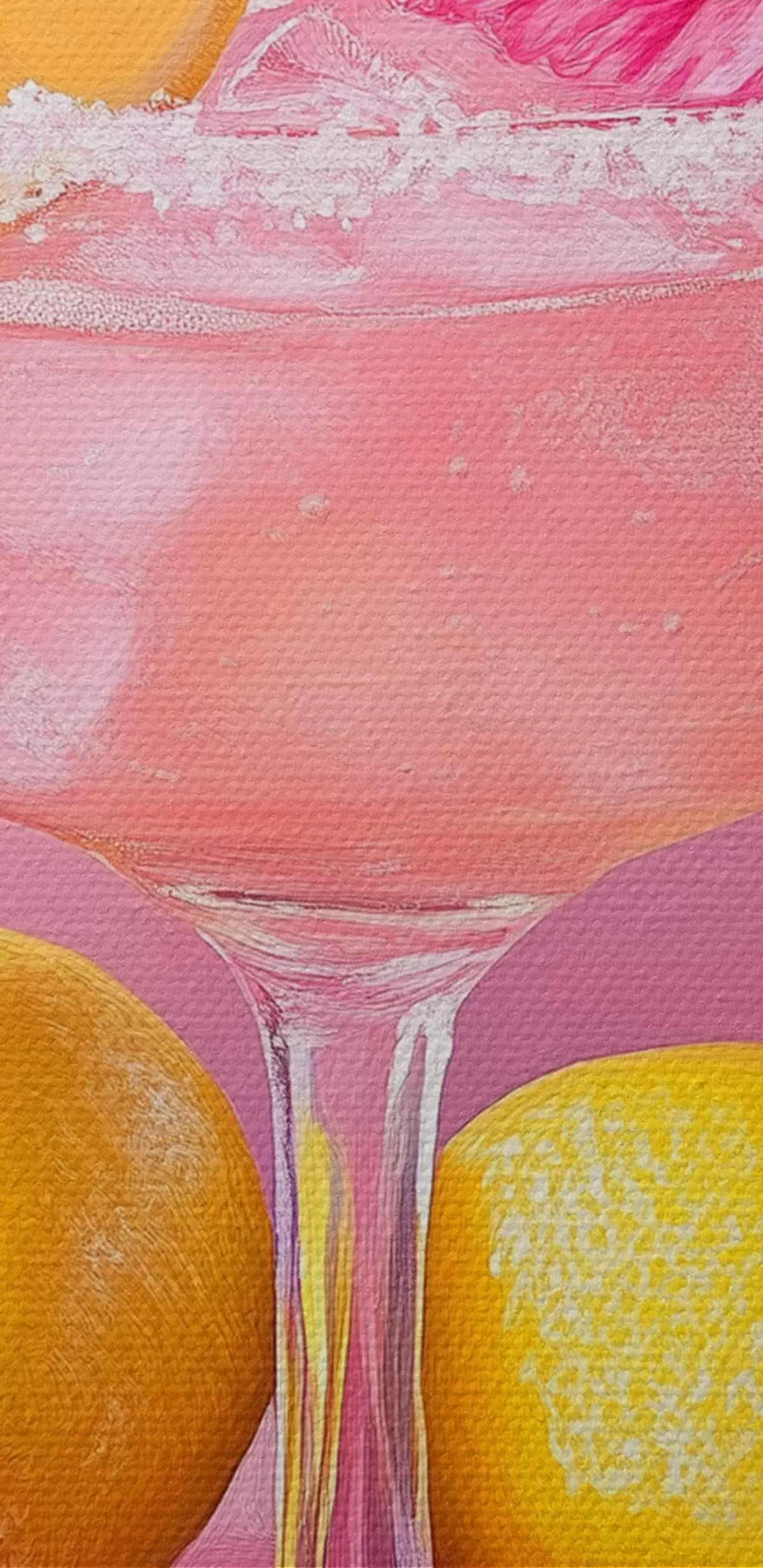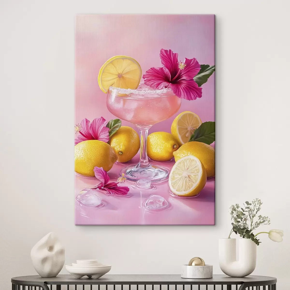 Paveikslas Vasaros kokteilis su gėlėmis ir citrinomis, rožinės spalvos, akvarelės stilius Nr s43895