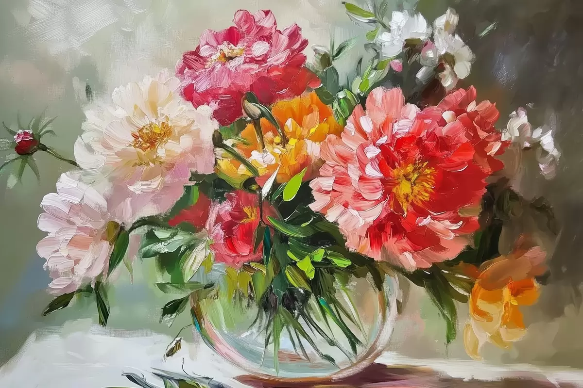Paveikslas Didelės ryškios gėlės vazoje Nr s43907