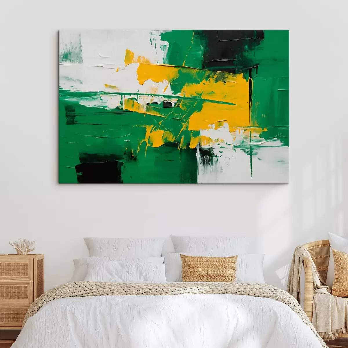 Paveikslas Abstrakti tapyba aliejiniais dažais balta, žalia ir geltona spalvomis aliejinės tapybos stiliumi Nr s43944