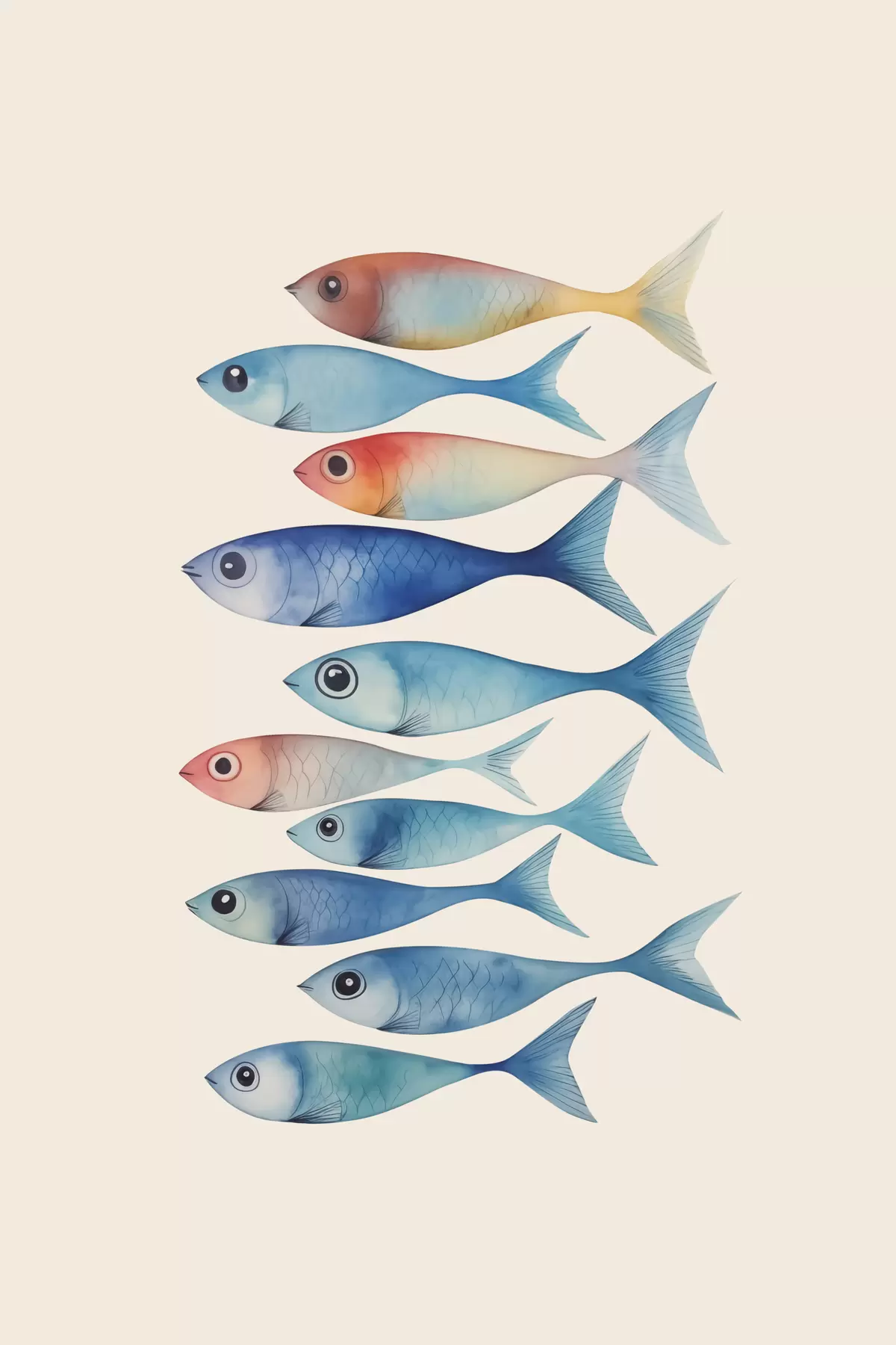 Paveikslėlis Žuvų minimalizmo imitacija akvarelė s43960