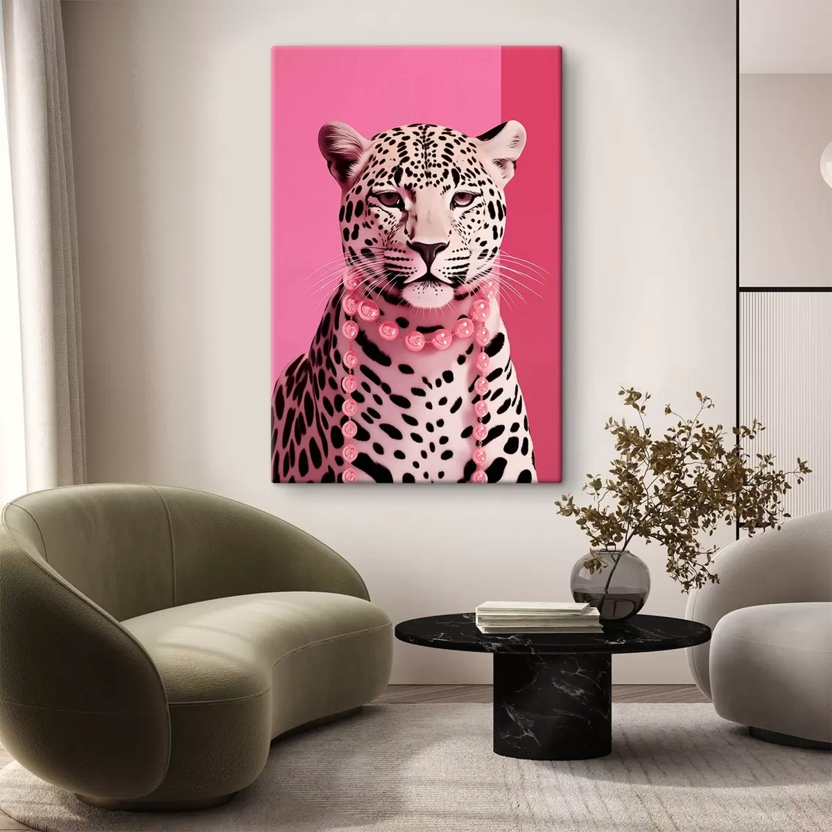 Paveikslas Leopardo portretas su rožiniu vėriniu Nr s43976