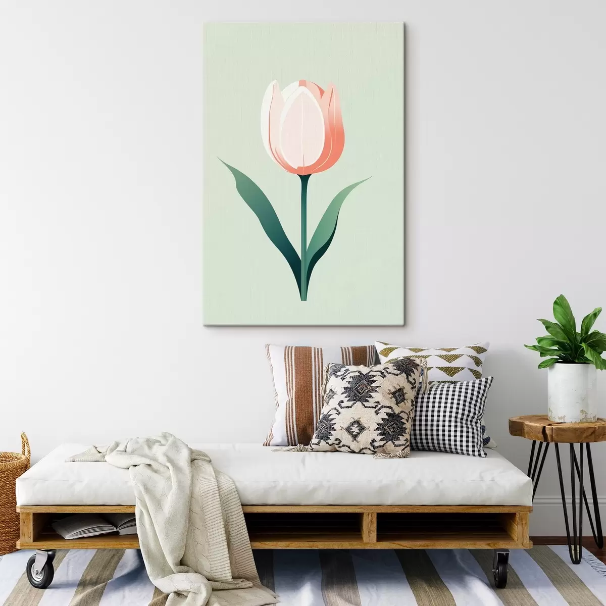 Paveikslas Dažyta tulpė šviesiai žaliame fone Nr s44000