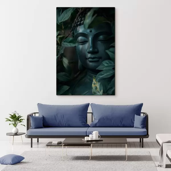 Paveikslas Žalias Buda atogrąžų lapuose, realizmas Nr s44005