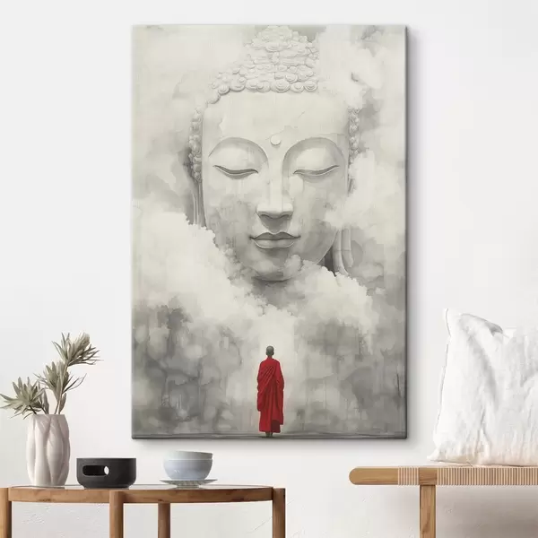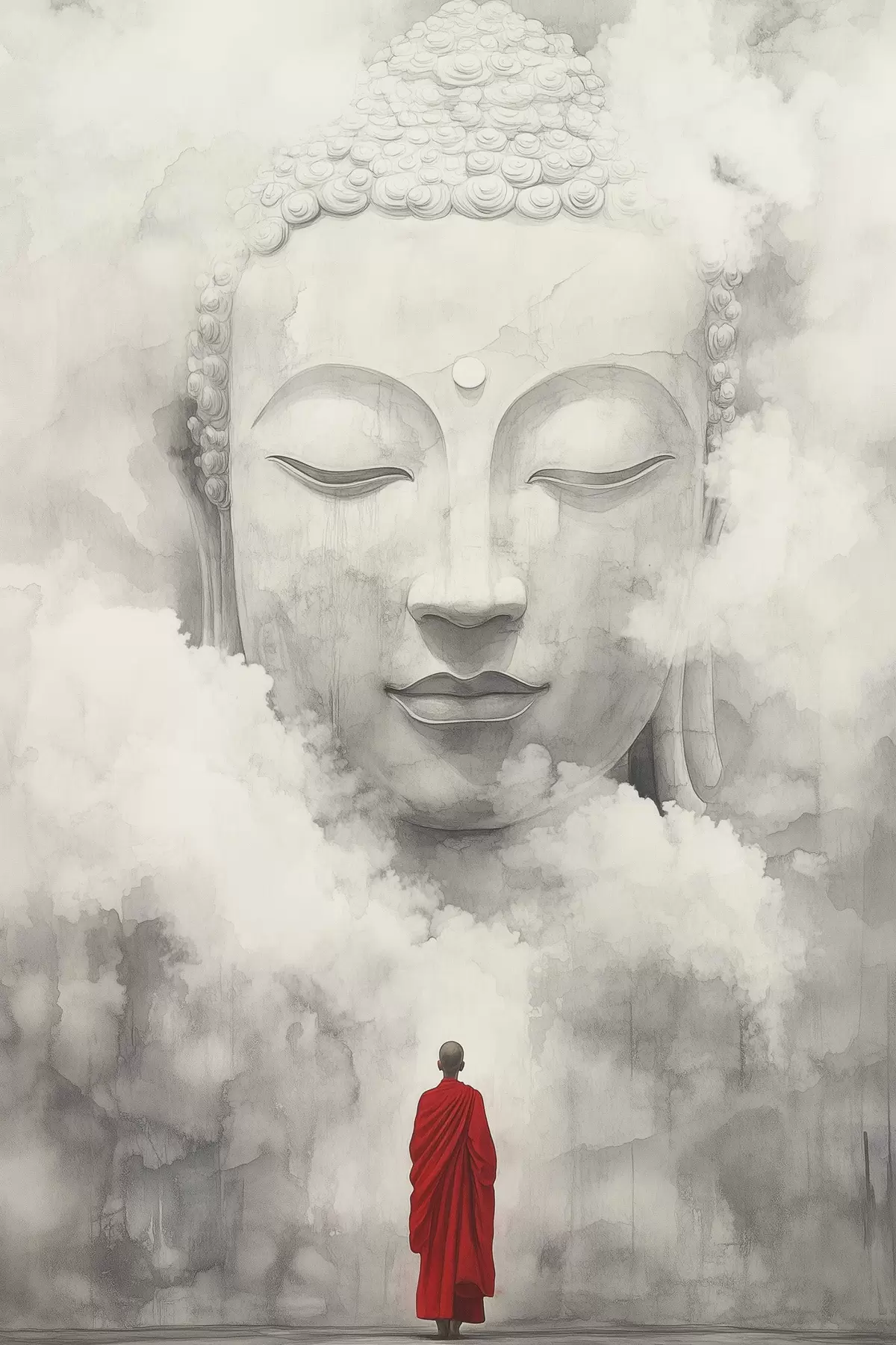 Paveikslas Budizmas, vienuolis raudonu apsiaustu, rūkas, akvarelės stilius Nr s44007