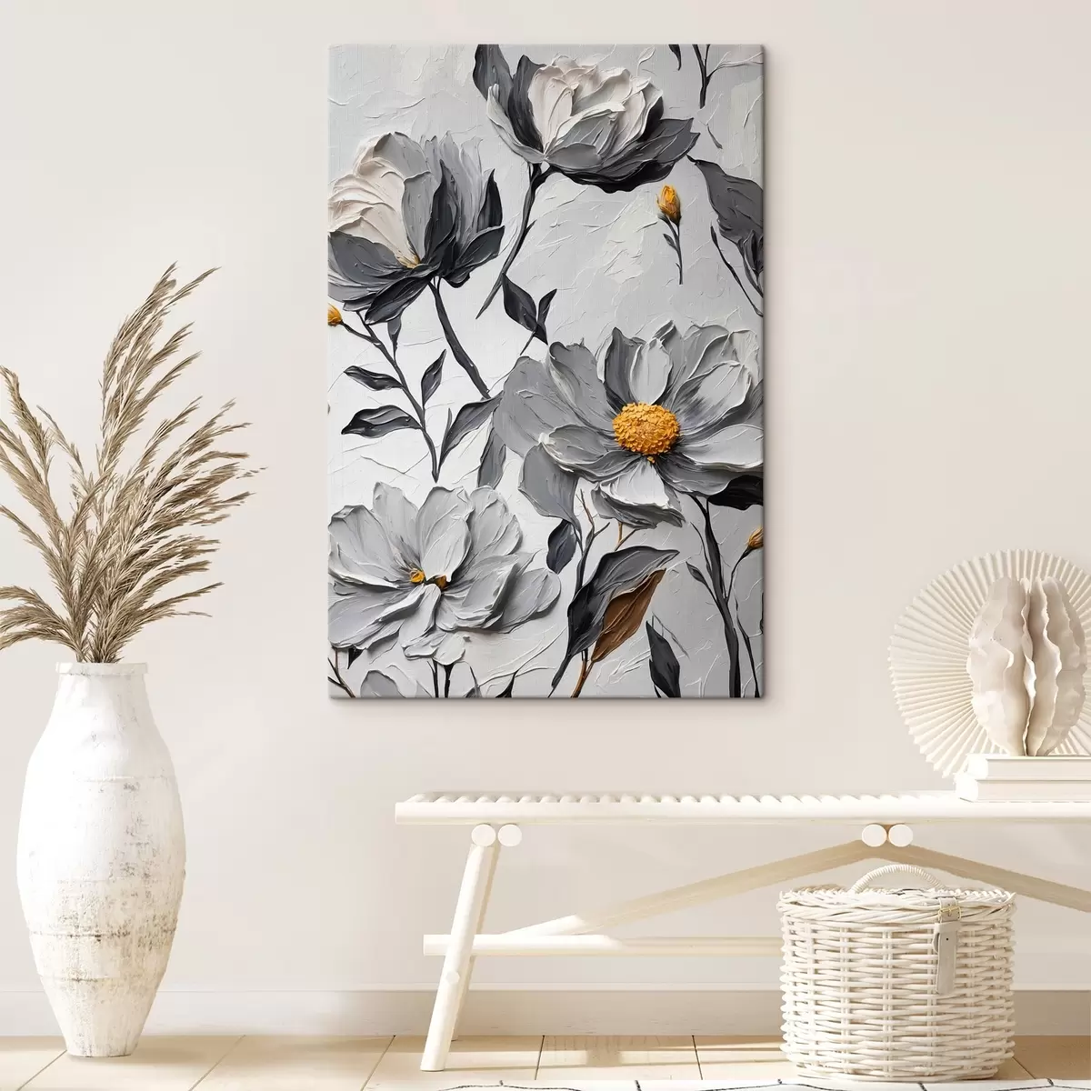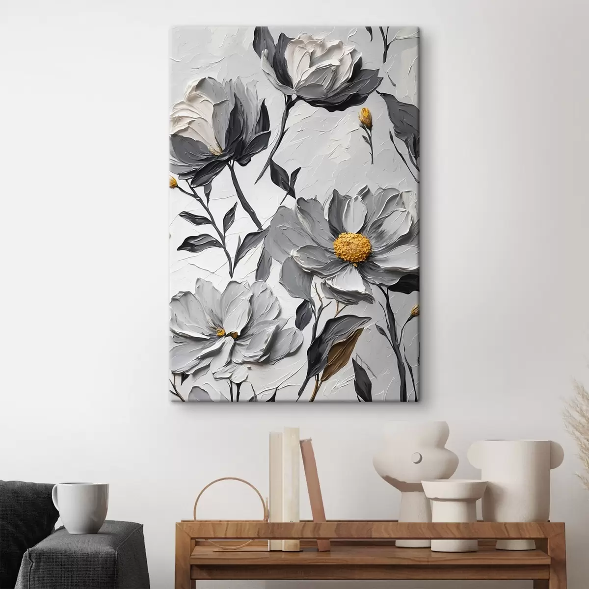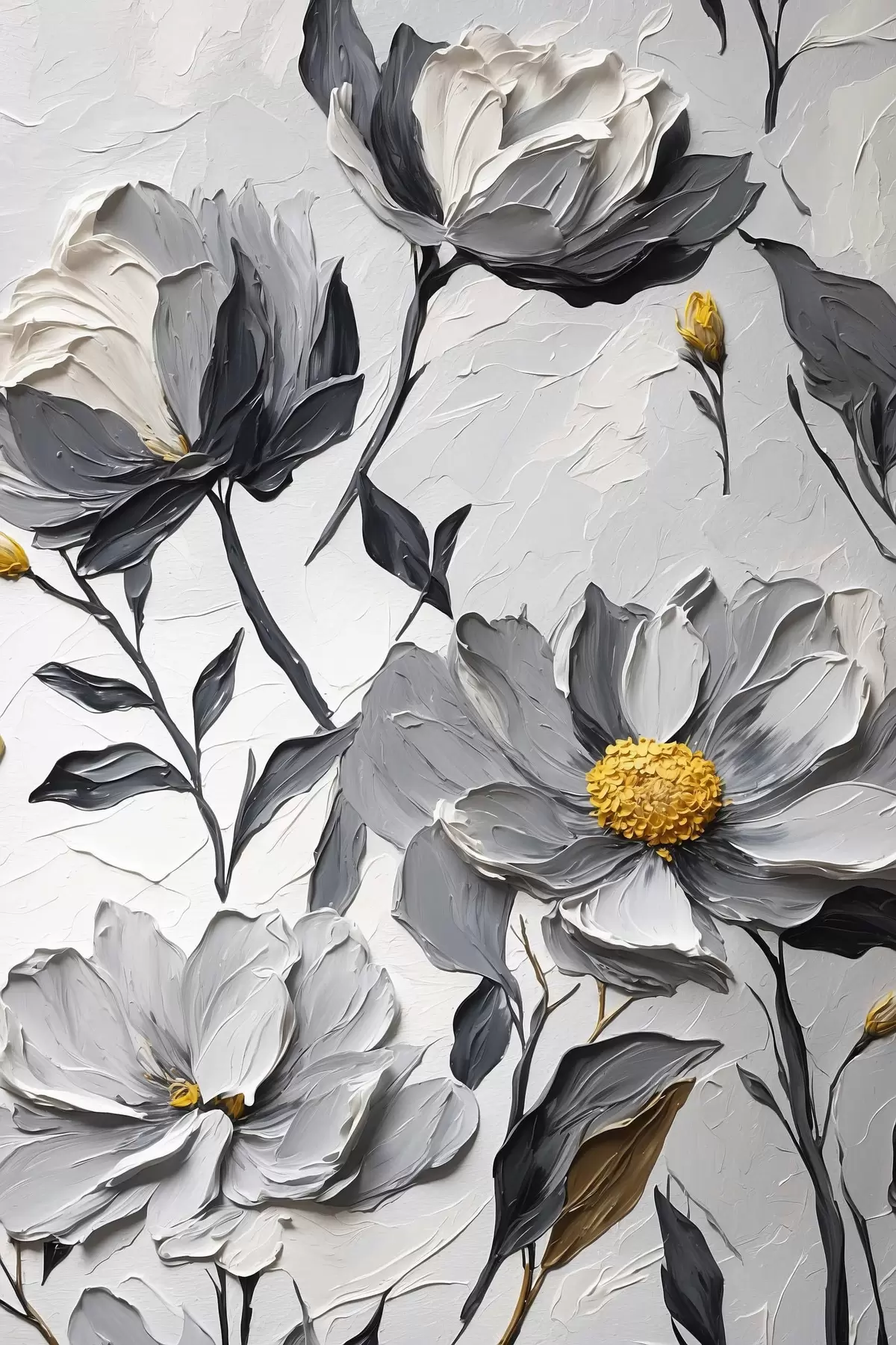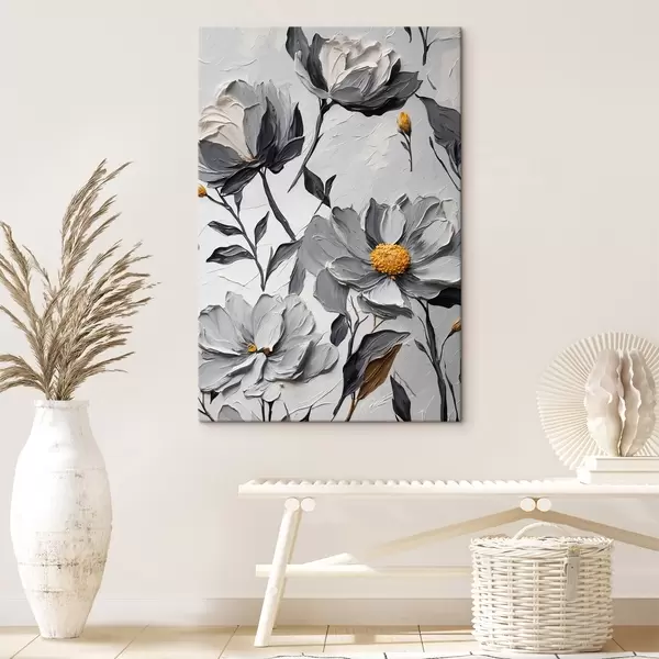 Paveikslas Pilkos gėlės pilkame fone aliejinės tapybos stiliumi Nr s44080