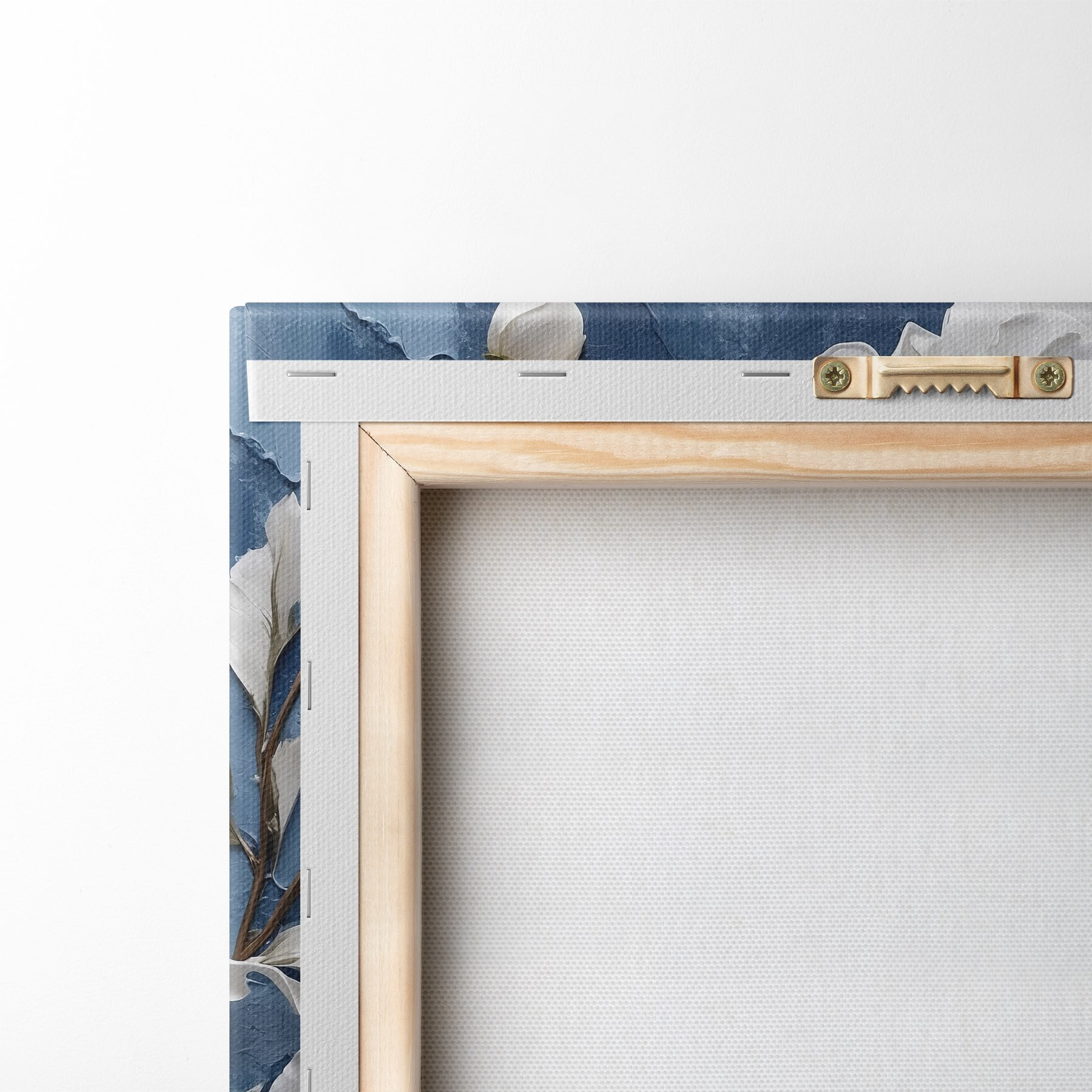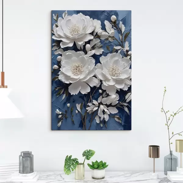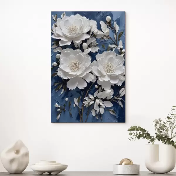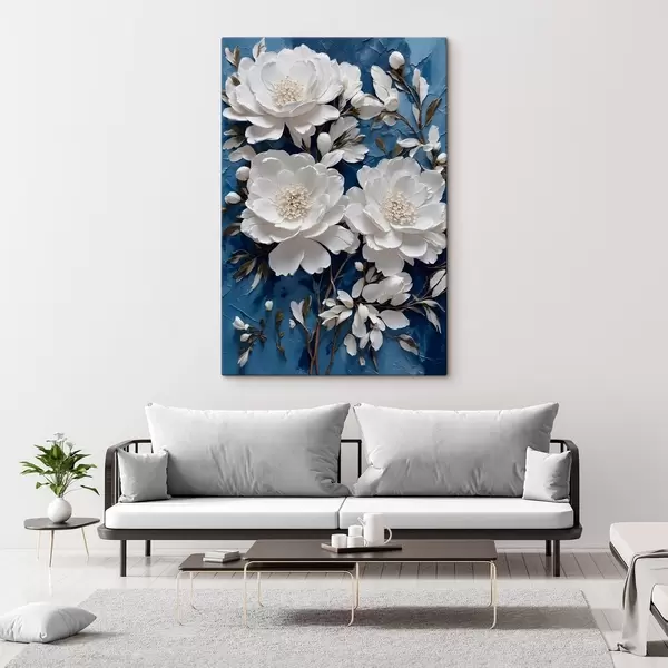 Paveikslas Baltos gėlės ant mėlyno aliejaus tapybai fono Nr s44091