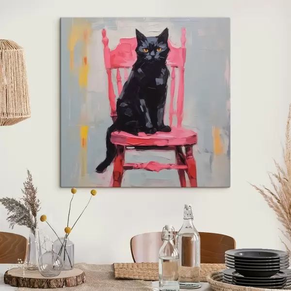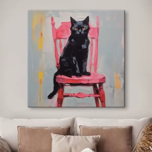 Paveikslas Juoda katė ant kėdės Nr s44130