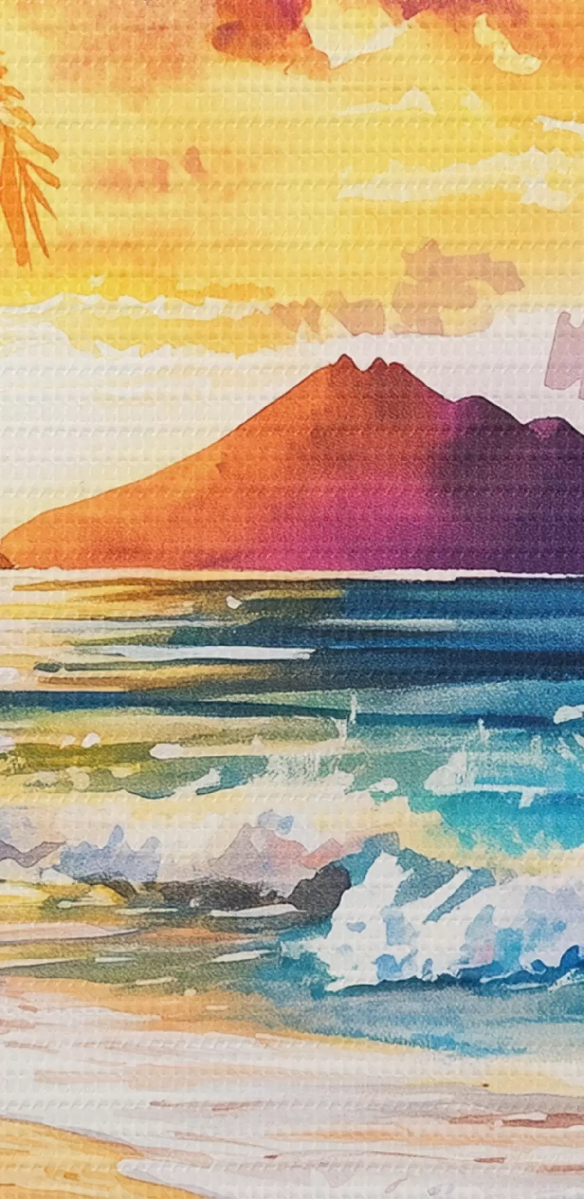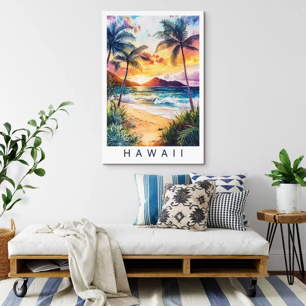 Paveikslas Saulėlydis Havajų saloje, palmės, vandenynas, spalvingas dangus, akvarelės stilius Nr s44142