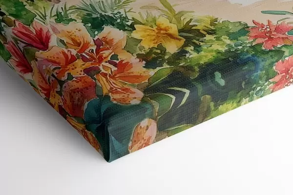 Paveikslas Atogrąžų vandenyno paplūdimys, palmės, gėlės, akvarelės stilius Nr s44145
