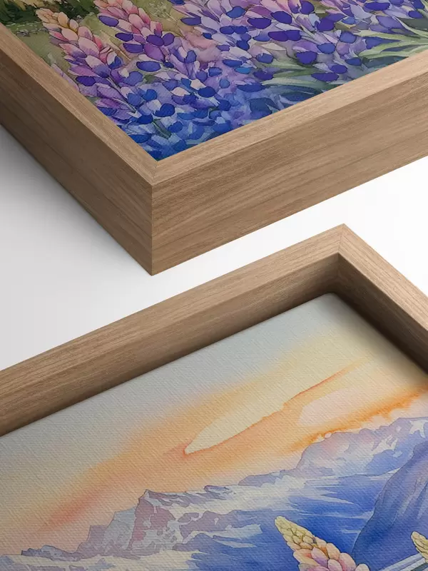 Paveikslas Lupinų gėlės, pieva, kalnai, akvarelės stilius, saulėlydžio dangus Nr s44146