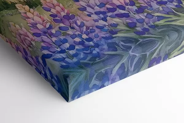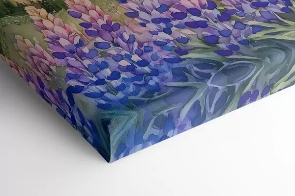 Paveikslas Lupinų gėlės, pieva, kalnai, akvarelės stilius, saulėlydžio dangus Nr s44146