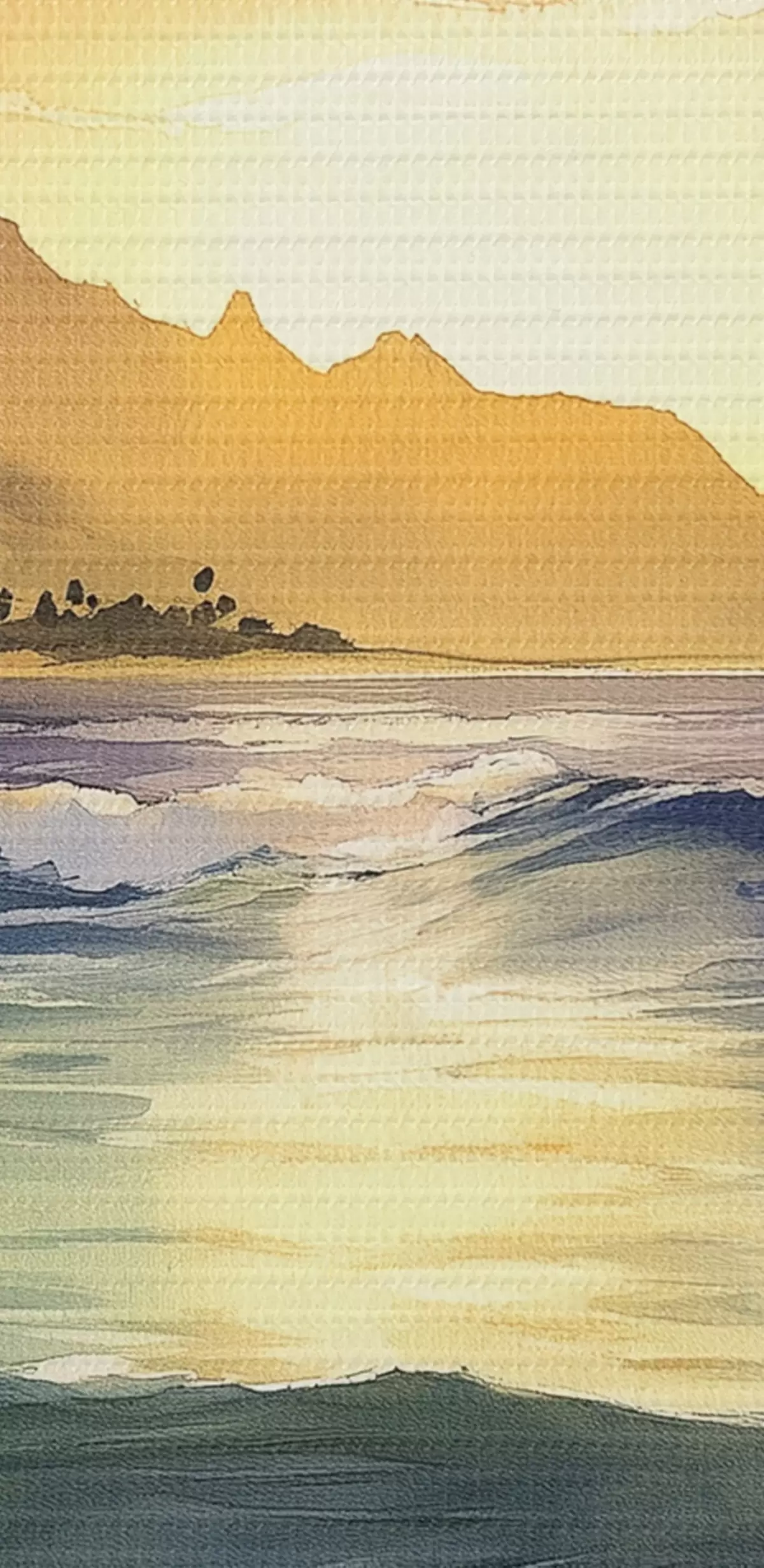 Paveikslas Vandenyno bangos, saulėlydis, akvarelės stilius, gamta Nr s44147