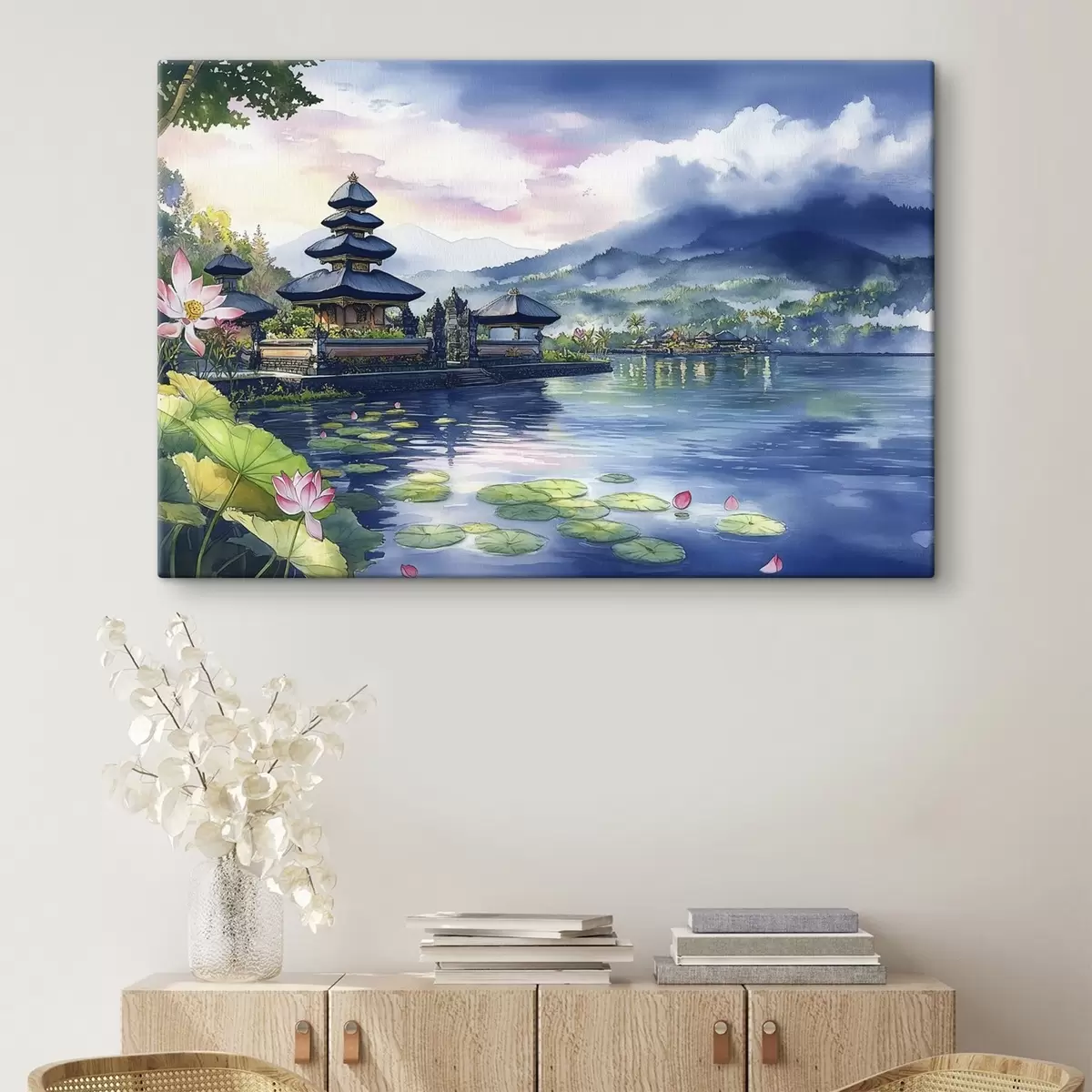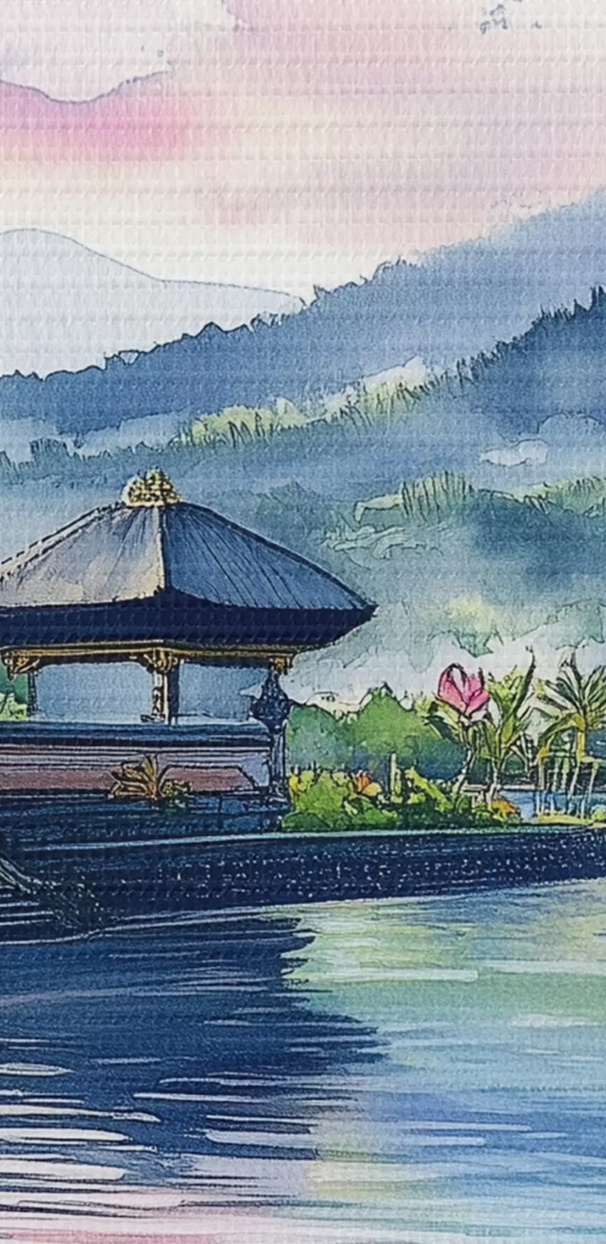 Paveikslas Indonezijos sala, šventykla, budizmas, atogrąžų gamta, akvarelės stilius Nr s44148