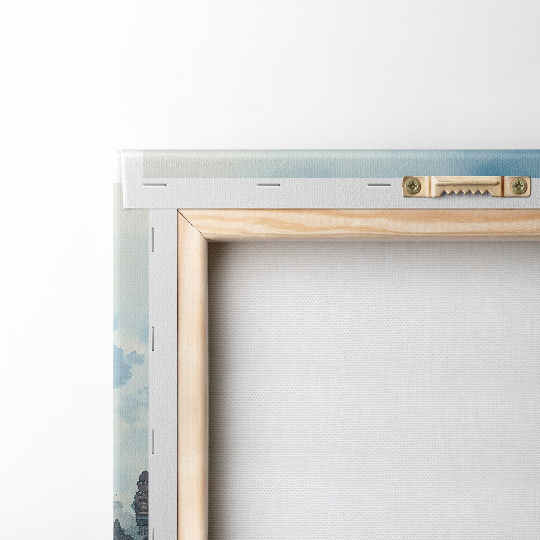 Paveikslas Balio estetika, šventykla, saulėlydžio dangus, atogrąžų gamta, akvarelės stilius Nr s44149