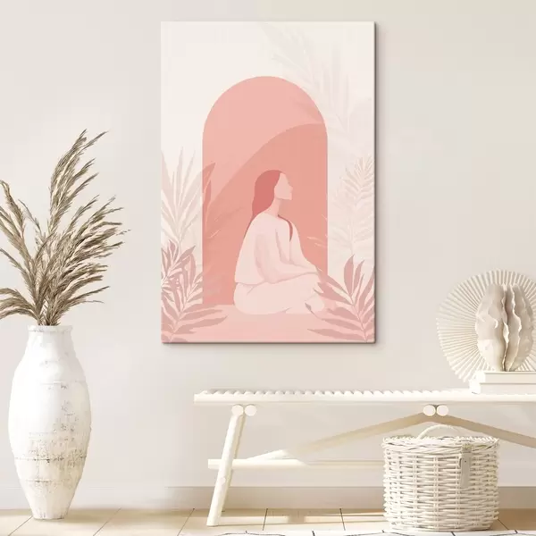 Paveikslas Moteris meditacijoje, plokščias stilius, atogrąžų augalai, rožinės spalvos Nr s44154