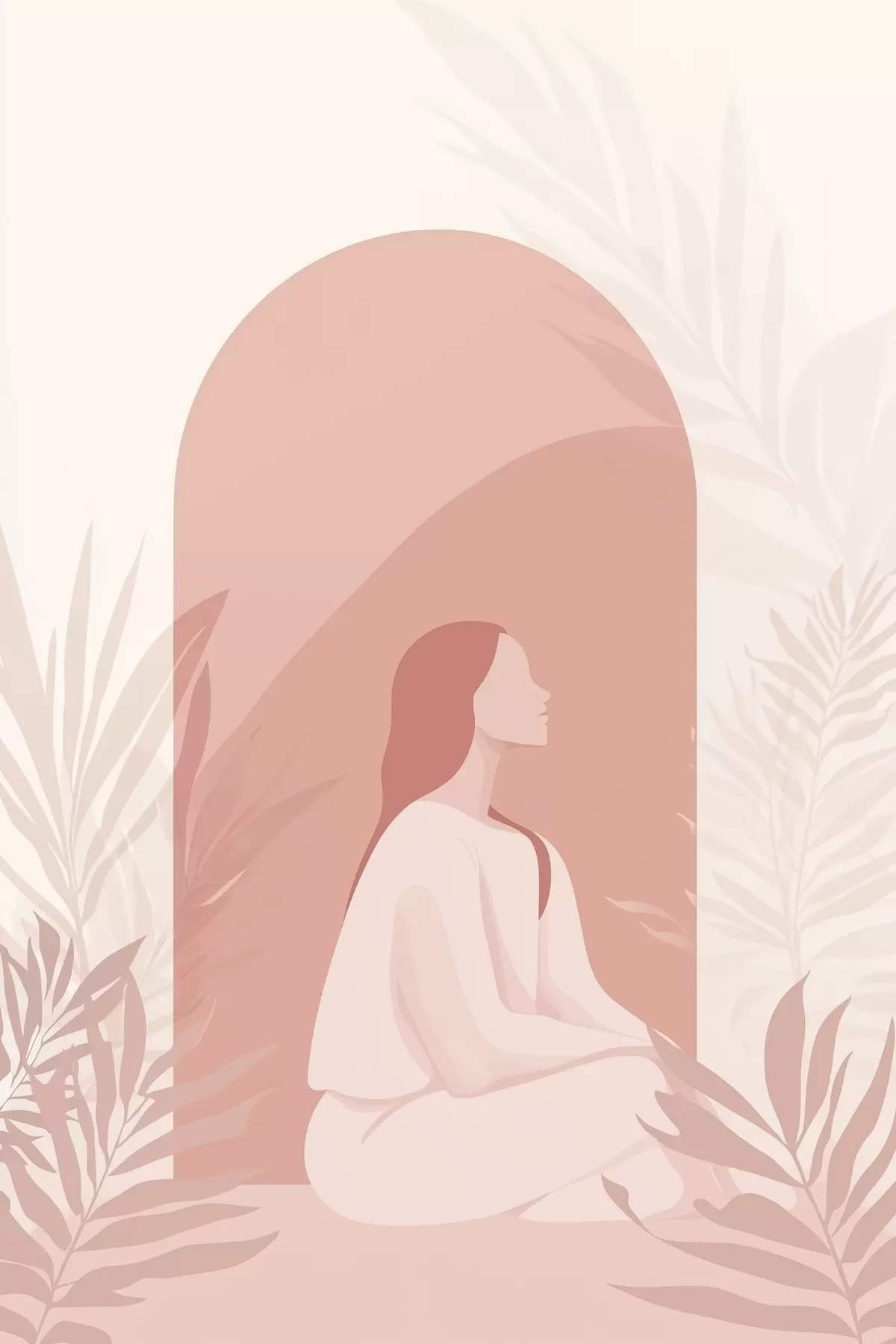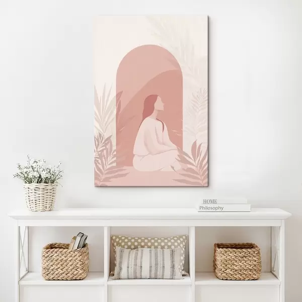 Paveikslas Moteris meditacijoje, plokščias stilius, atogrąžų augalai, rožinės spalvos Nr s44154