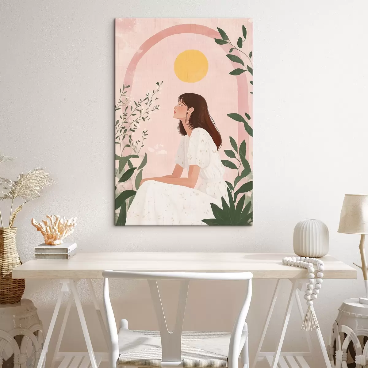 Paveikslas Graži moteris atogrąžų sode, saulė, pastelinės spalvos Nr s44155