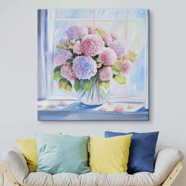 Paveikslas Gėlių puokštė ant lango Nr s44210