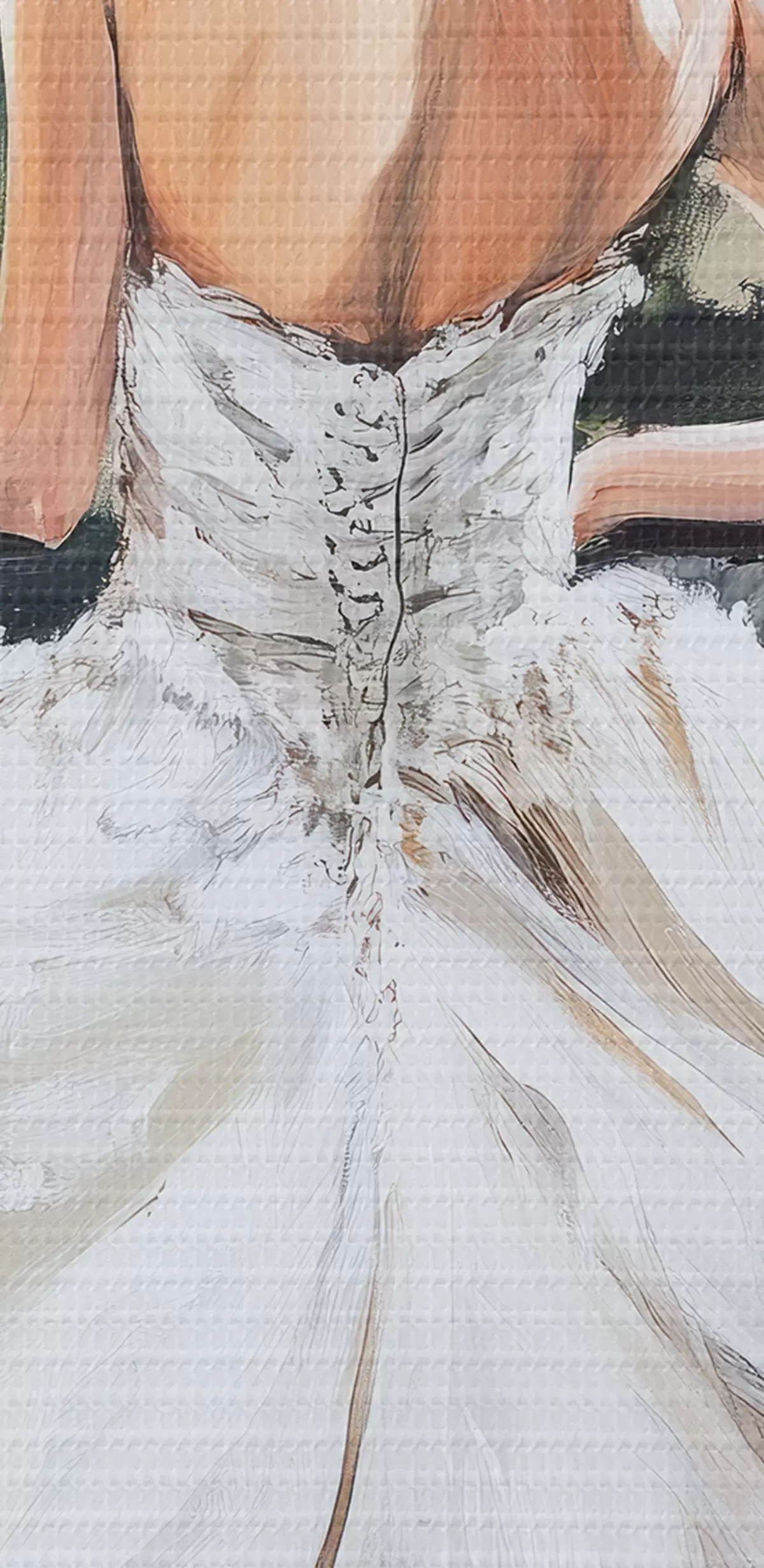Galima užsakyti trijų rūšių medžiagą: "Economic Canvas" - tanki ir patvari medžiaga skaitmeninei spaudai, identiška dailininko drobės medžiagai, vandeniui atsparus paviršius, tikroviškas detalių atkūrimas, vidutinio grūdėtumo medžiaga. Premium Canvas - tekstūra primena dailininko drobę (susipynę smulkūs siūlai). Minkštas, detalus vaizdo atkūrimas ant matinio paviršiaus. Eco-Premium - aukštos kokybės 100 % medvilninis audinys. Dėl natūralių medvilnės pluoštų medžiaga yra patvari ir atspari nusidėvėjimui. Puikus spalvų atkūrimas ir detalumas.
