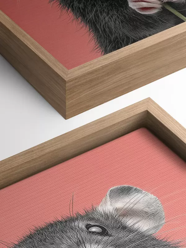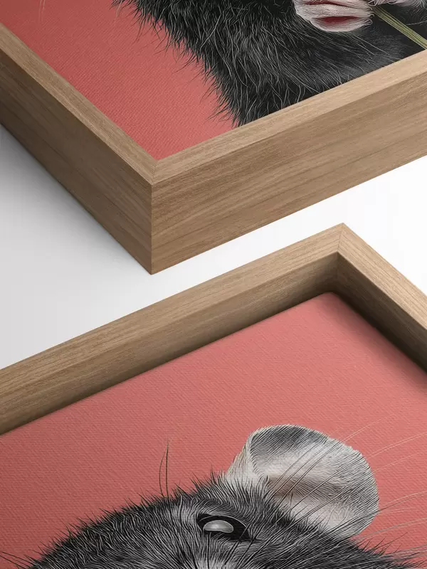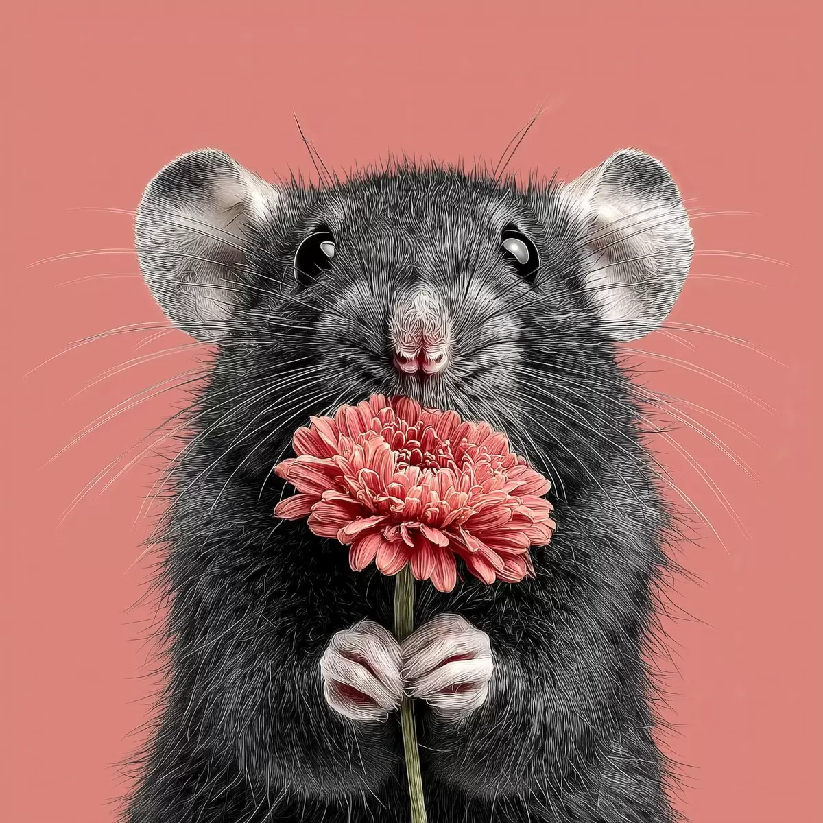 Paveikslas Minimalistinio stiliaus smalsi žiurkė su rožine gerbera Nr s44241