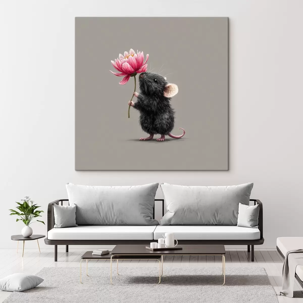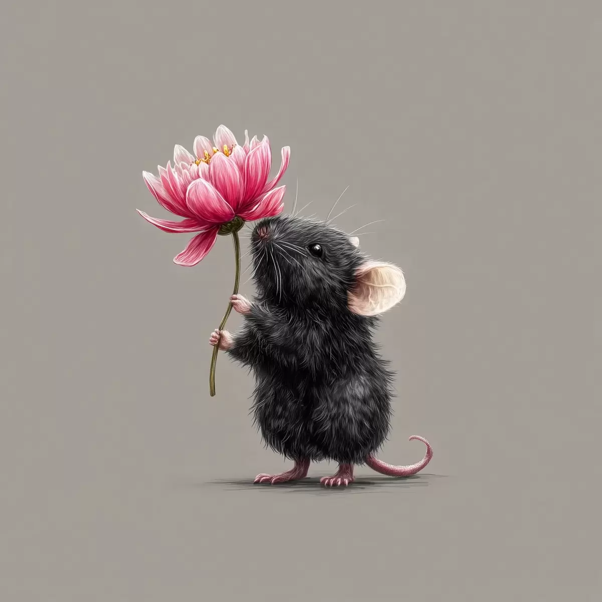 Paveikslas Žavinga pelė įkvepia rausvo bijūno aromatą Nr s44248