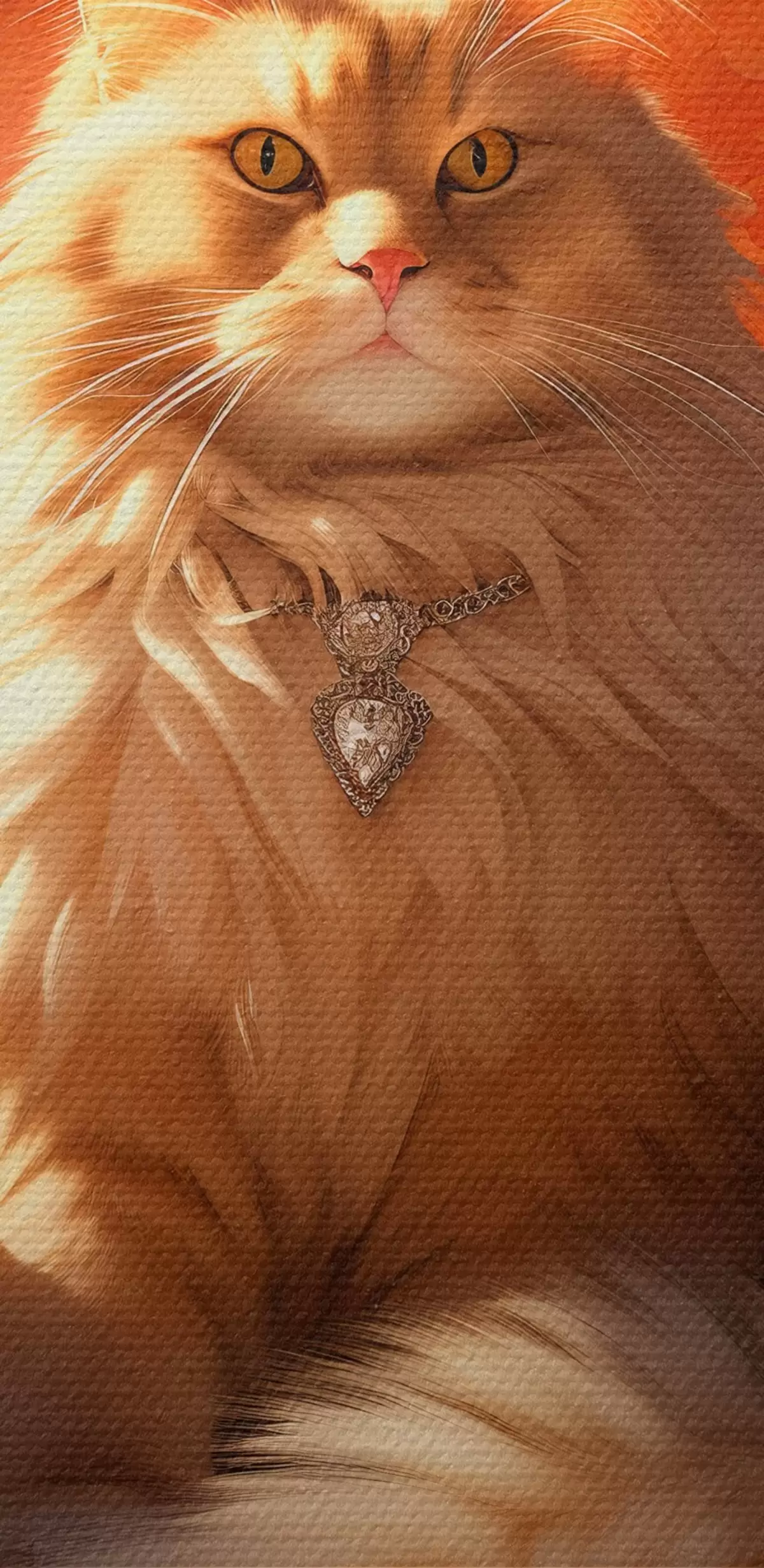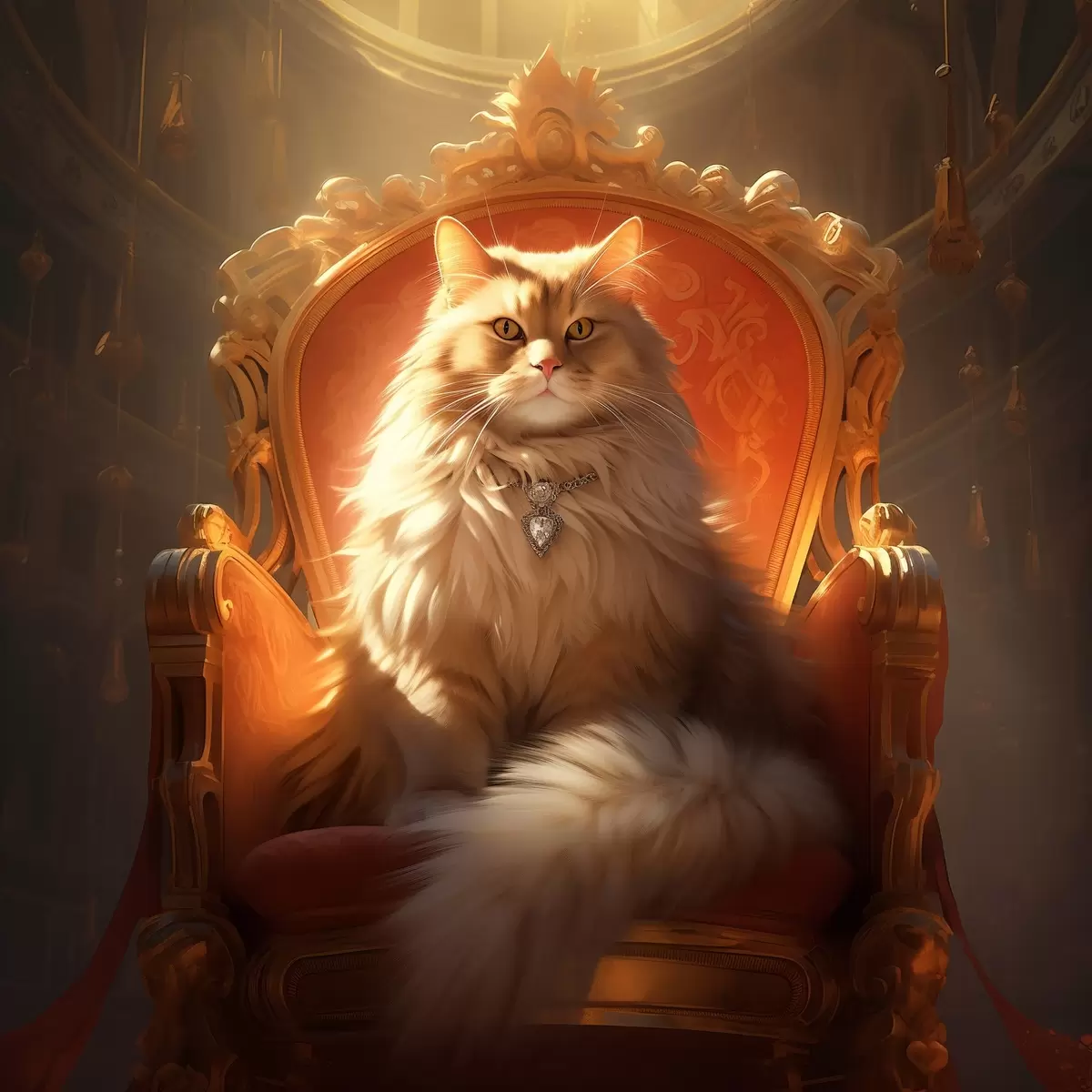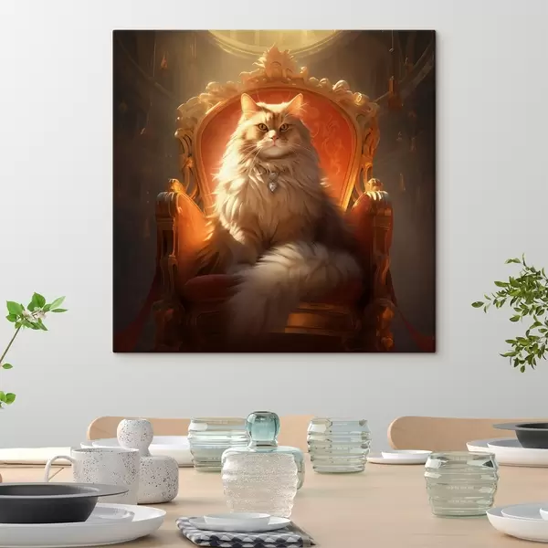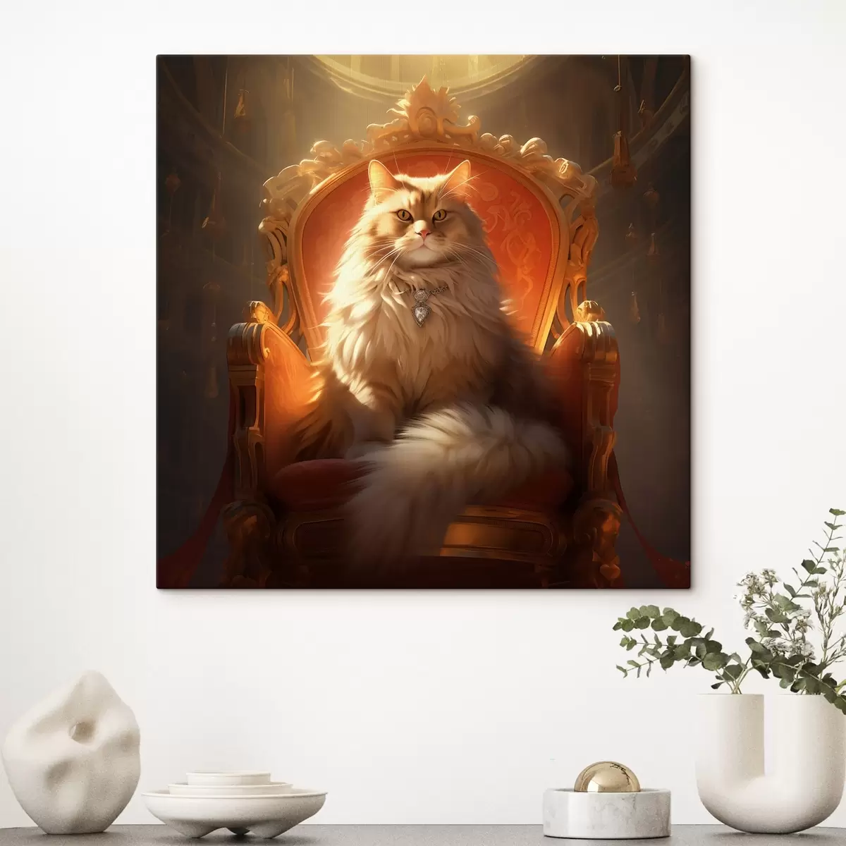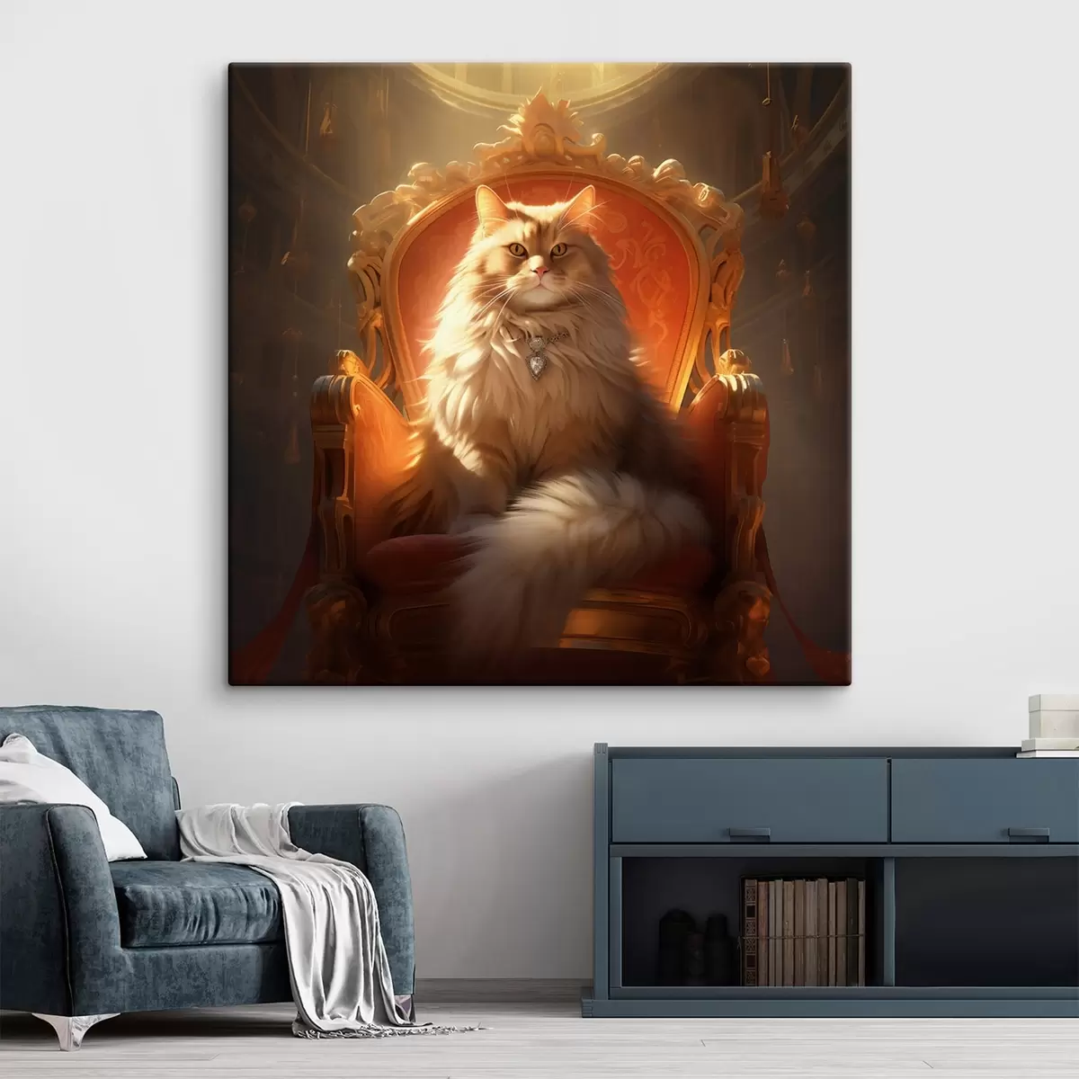 Paveikslas Karališkas katinas gintarinėmis akimis ant sosto šlovės spinduliuose barokinio stiliaus soste Nr s44250