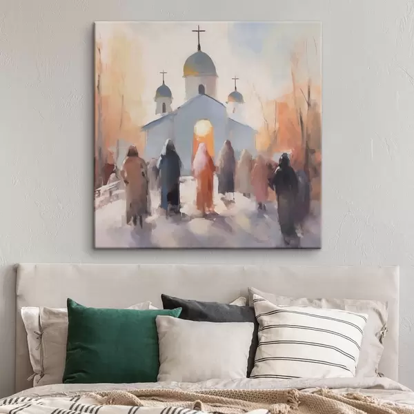Paveikslą galima pakabinti iš karto jį gavus. Paveikslas bus ištemptas ant 2 cm pločio medinių neštuvų.