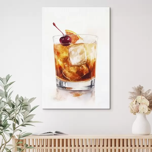 Paveikslas Apelsinų kokteilis su ledu ir vyšniomis, akvarelės stilius Nr s44303