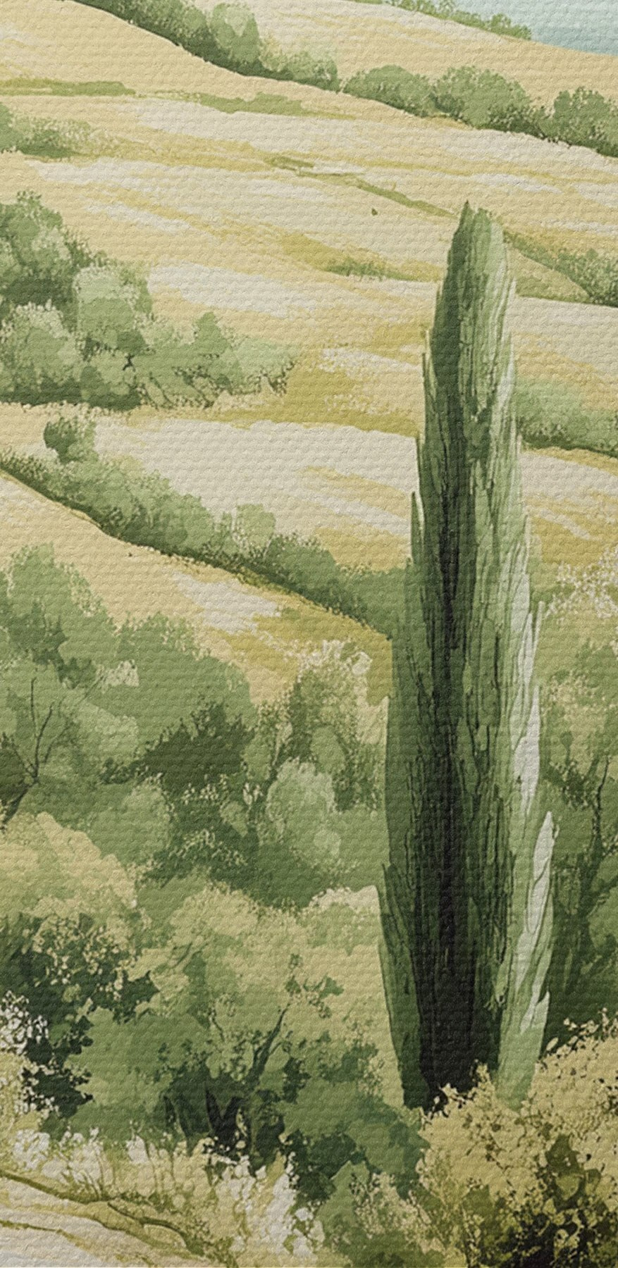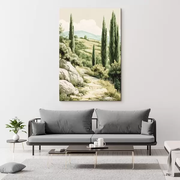 Paveikslas Vasaros kraštovaizdžiai su kiparisais ir žaliomis kalvomis, kaimiškas stilius Nr s44308