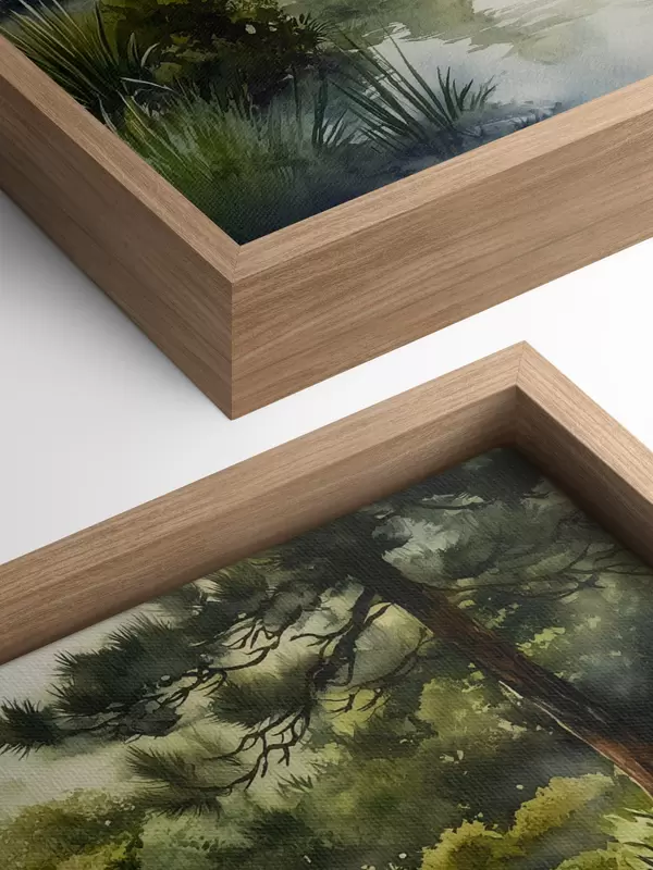 Paveikslas Rytietiškas miškas su akmenimis, tvenkiniu ir pušimis, žaluma, akvarelės stilius Nr s44311