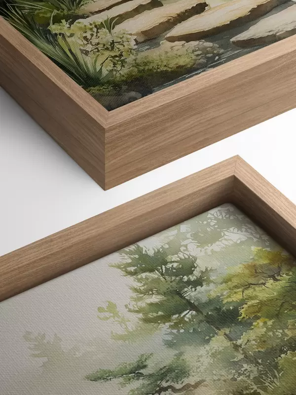 Paveikslas Rytietiškas sodas su ežeru ir medžiais, gamta, akvarelės stilius Nr s44313