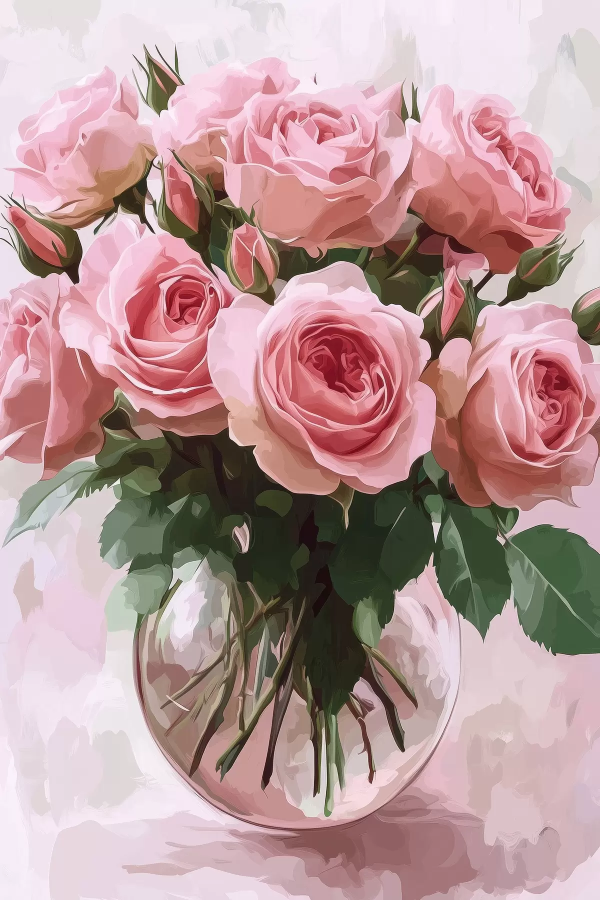 Paveikslas Rožinių gėlių puokštė Nr s44321