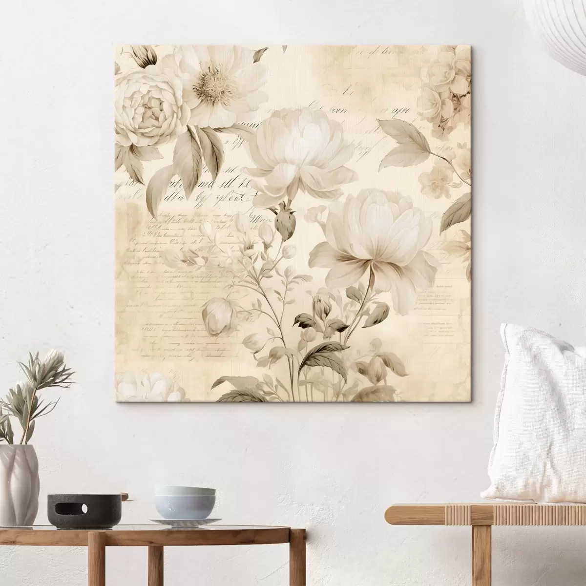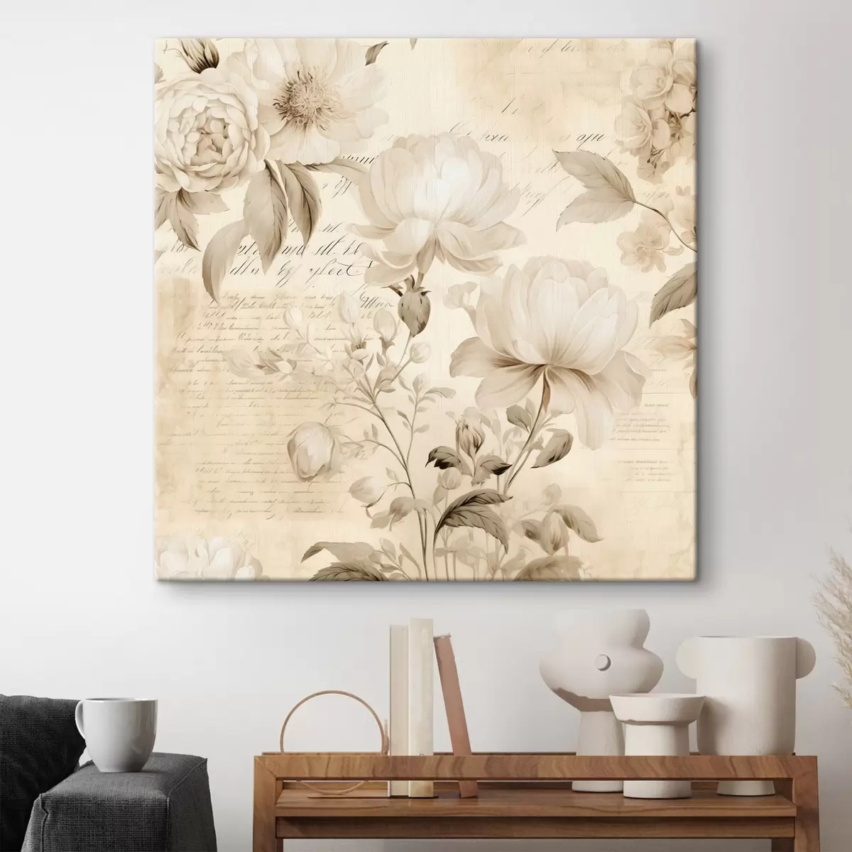 Paveikslas Senovinė kreminės baltos spalvos gėlių kompozicija Nr s44332