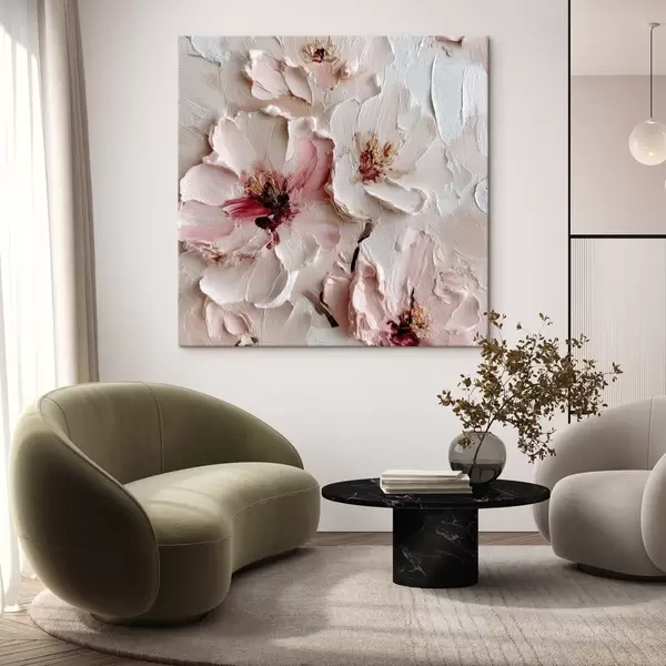 Paveikslas Gėlės su impasto stiliaus imitacija rausvais ir baltais potėpiais Nr s44333