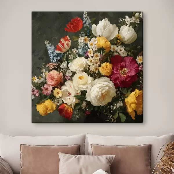 Paveikslas Sodrių atspalvių įvairių gėlių puokštė Nr s44334