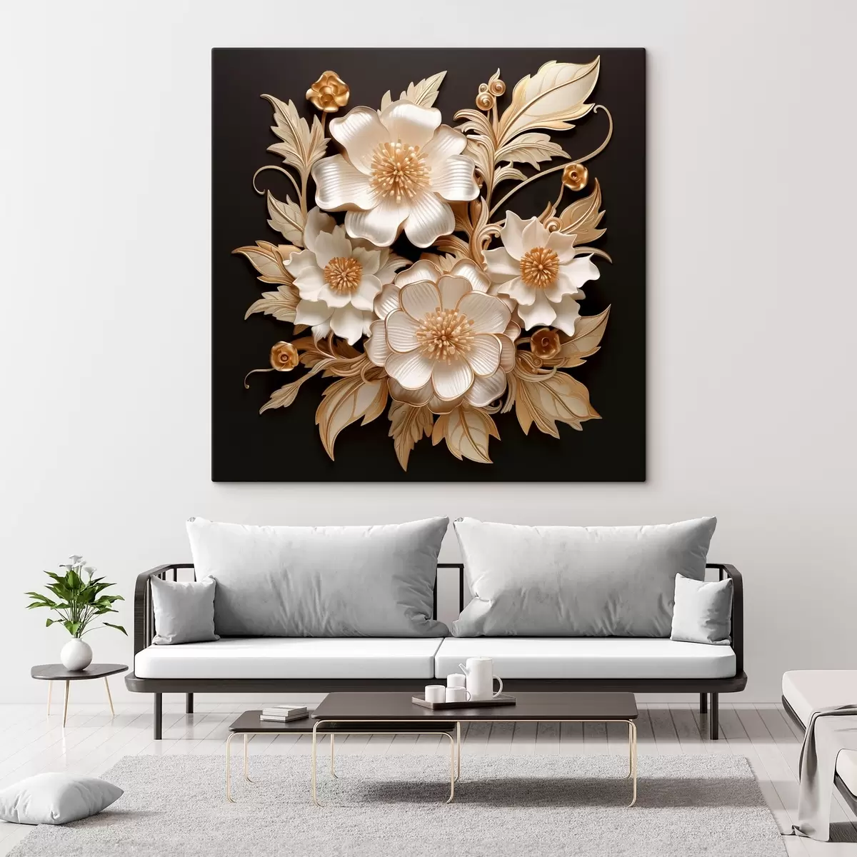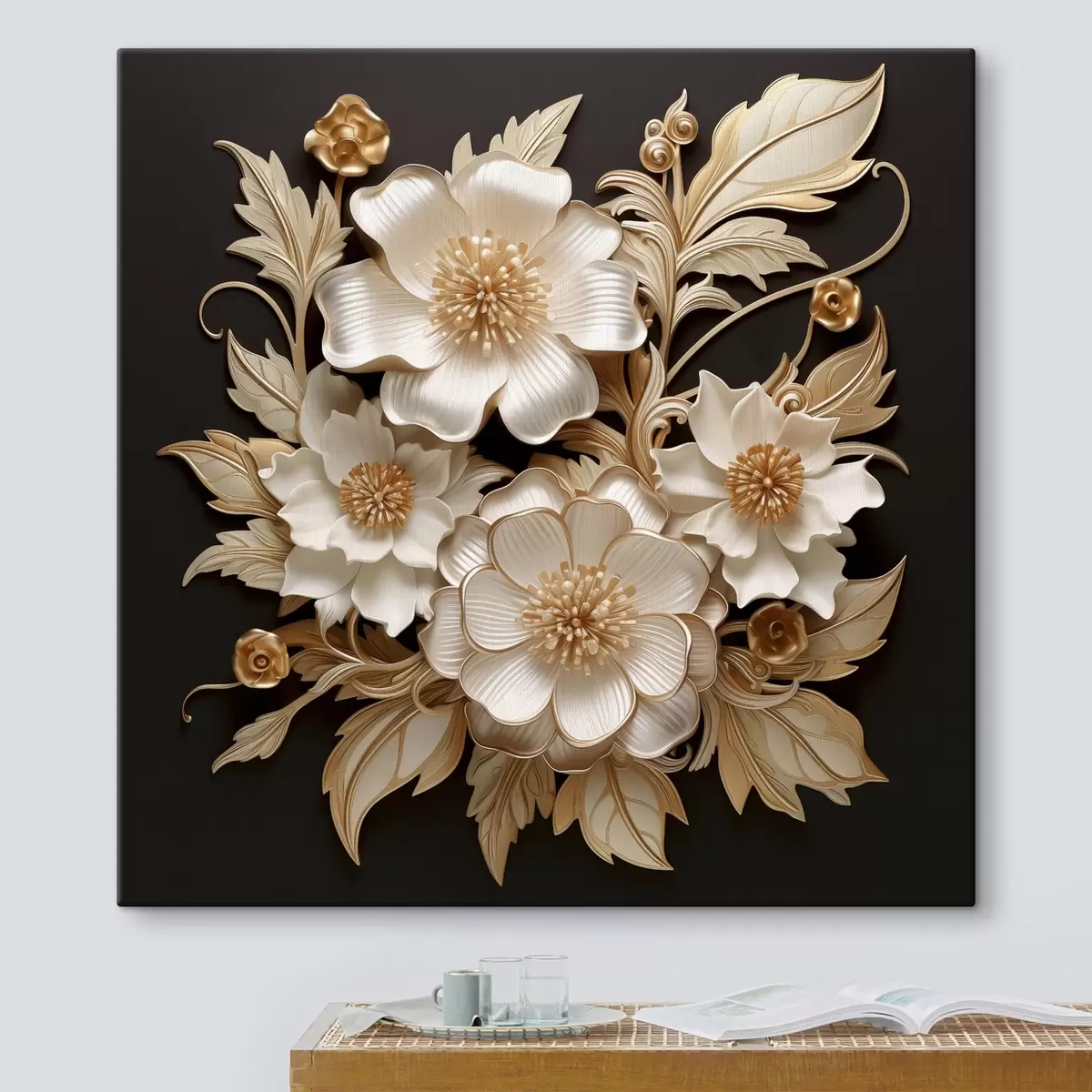 Paveikslas Gausios baltos gėlės juodame fone Nr s44340