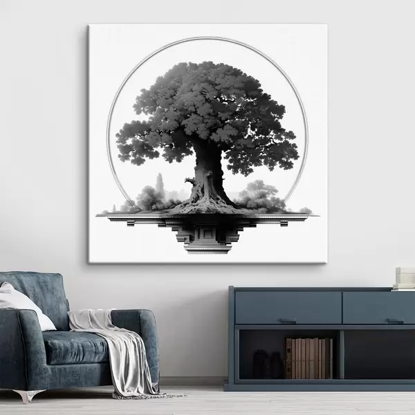 Paveikslas Vienspalvis medis su galingu kamienu ir išsikerojusia laja Nr s44346