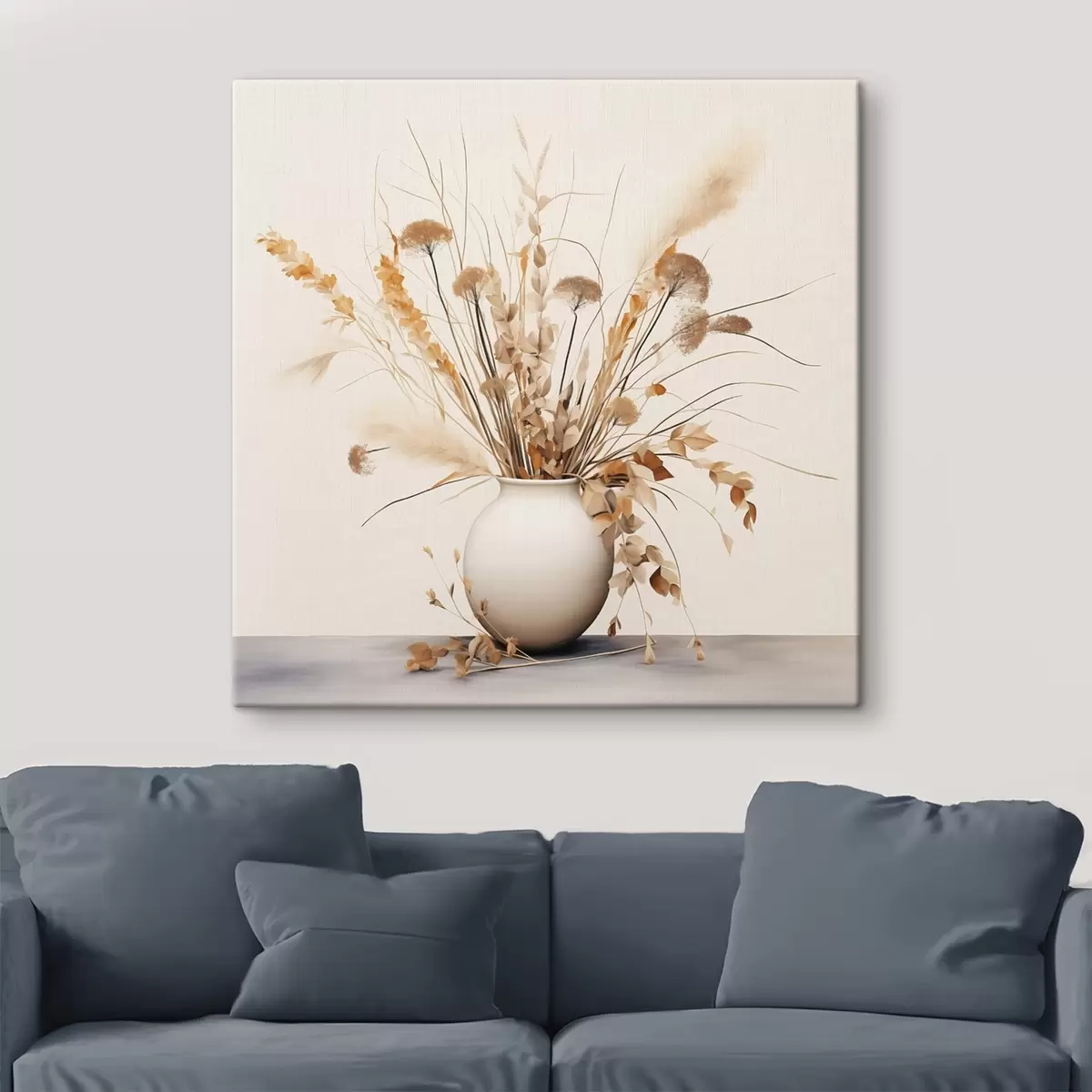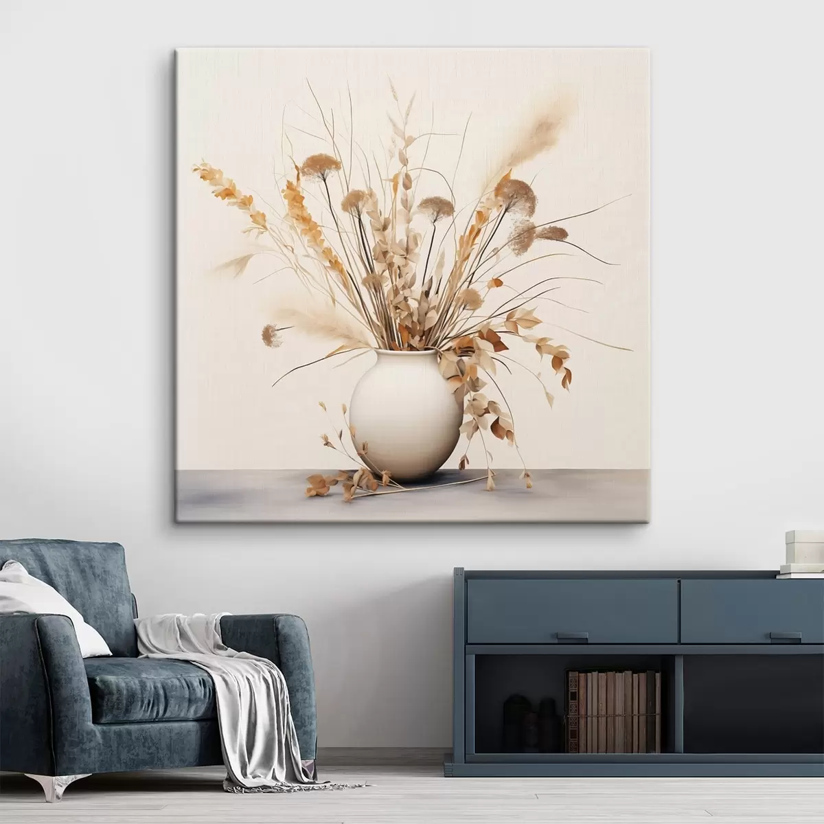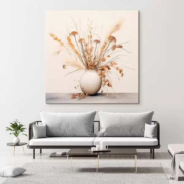 Paveikslas Džiovintų žolių ir gėlių kompozicija baltoje vazoje Nr s44348