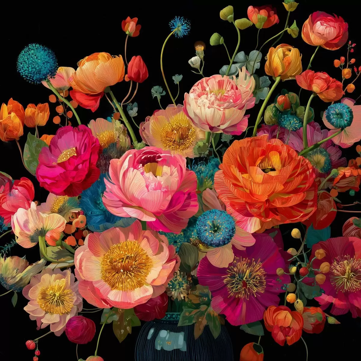 Paveikslas Gėlių ekstravagancija juodame fone Nr s44352