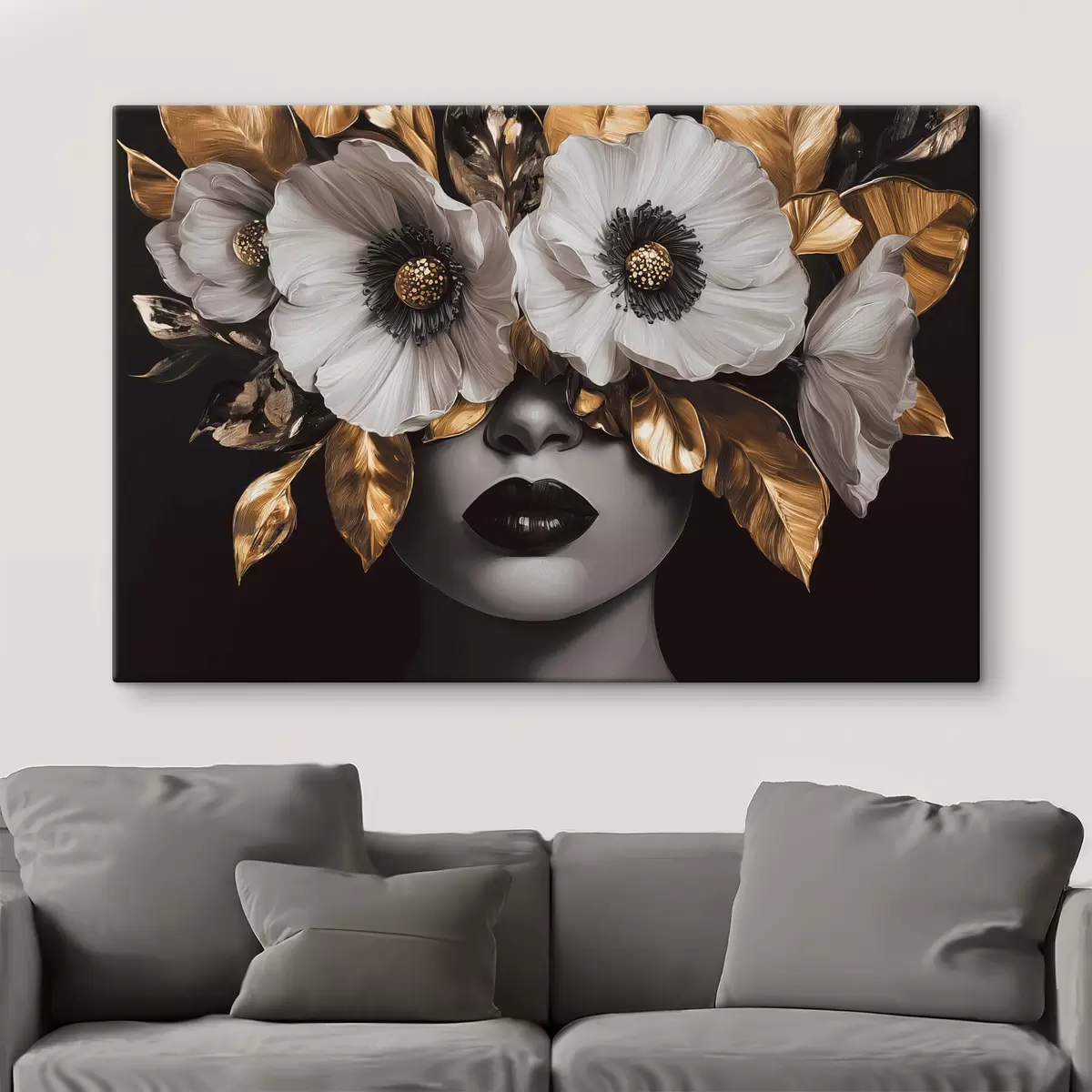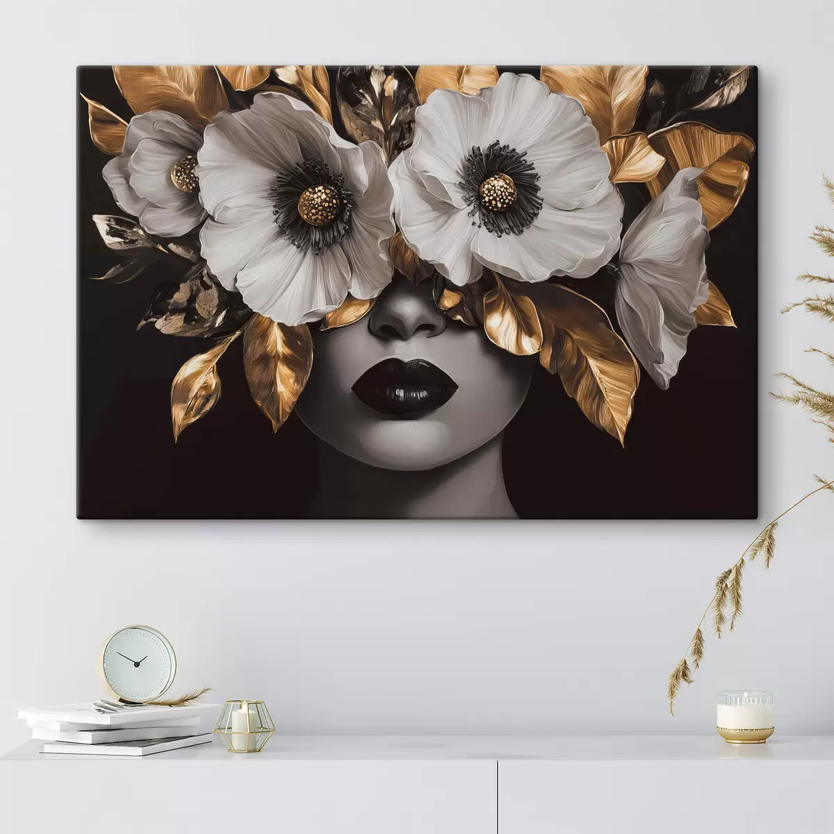 Paveikslas Pusiau abstraktus moters su gėlėmis portretas Nr s44365