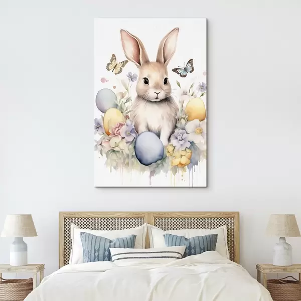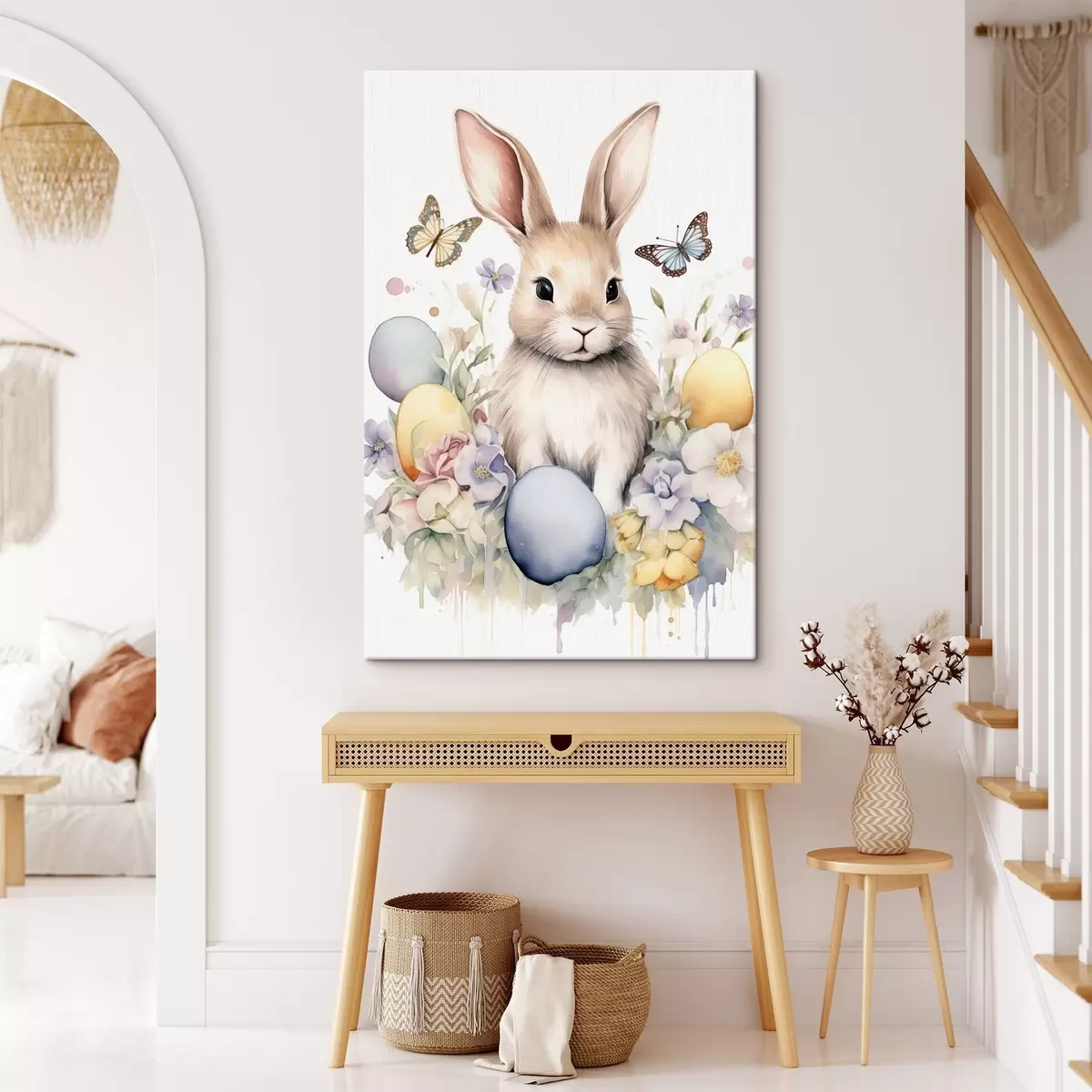 Paveikslas Mielas akvarelės stiliaus zuikutis gėlėse su drugeliais Nr s44388