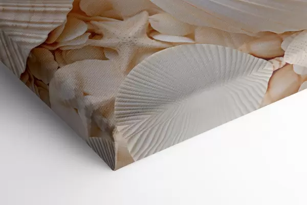 Paveikslas Dekoratyvinės baltos kriauklės ir jūrų žvaigždės, sukuriančios faktūrinę vienspalvę kompoziciją Nr s44392