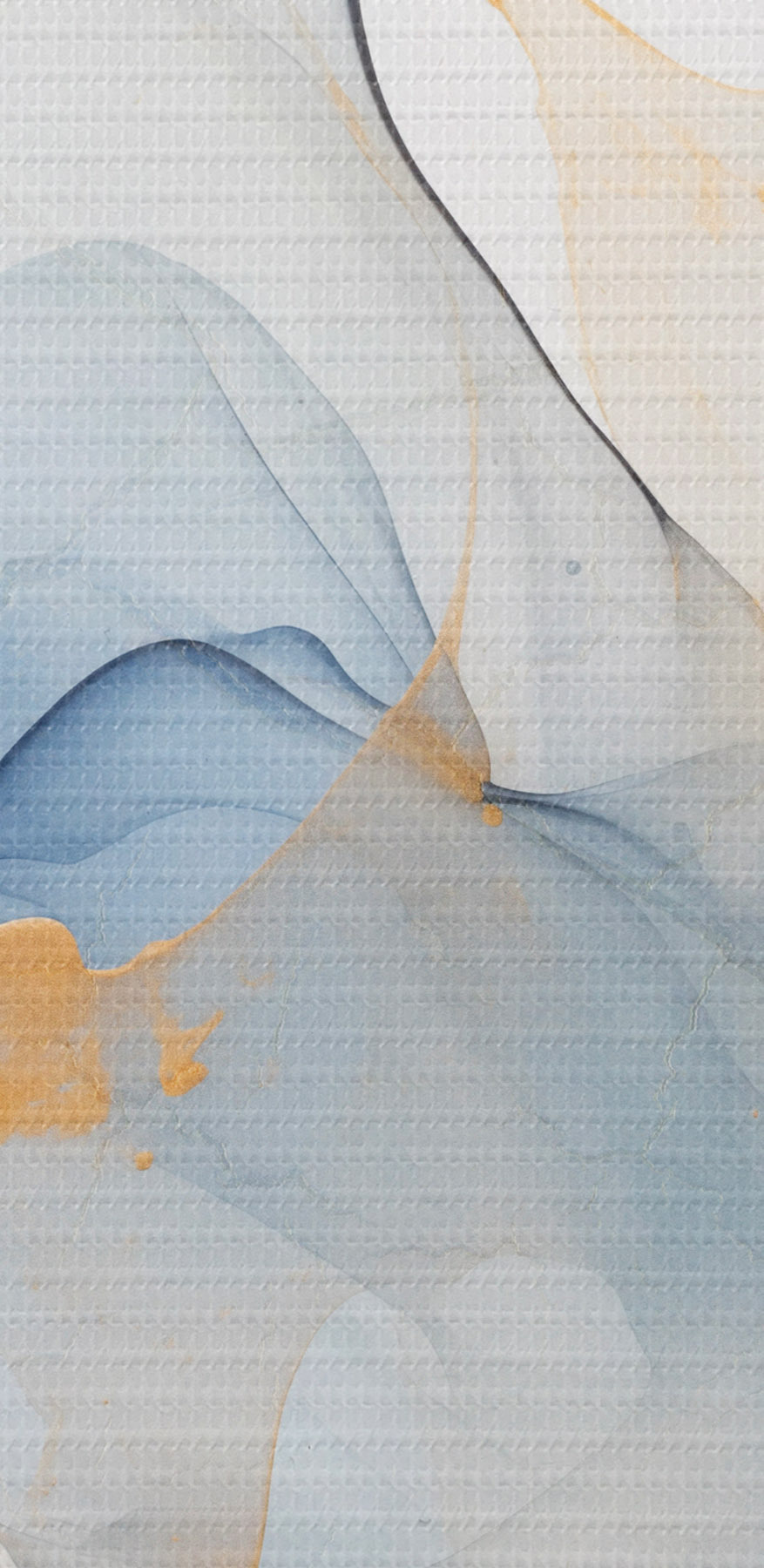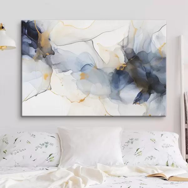 Paveikslas Abstraktus paveikslas mėlynu tušu, skystos ir organiškos formos, subtilios tekstūros baltame fone Nr s44397