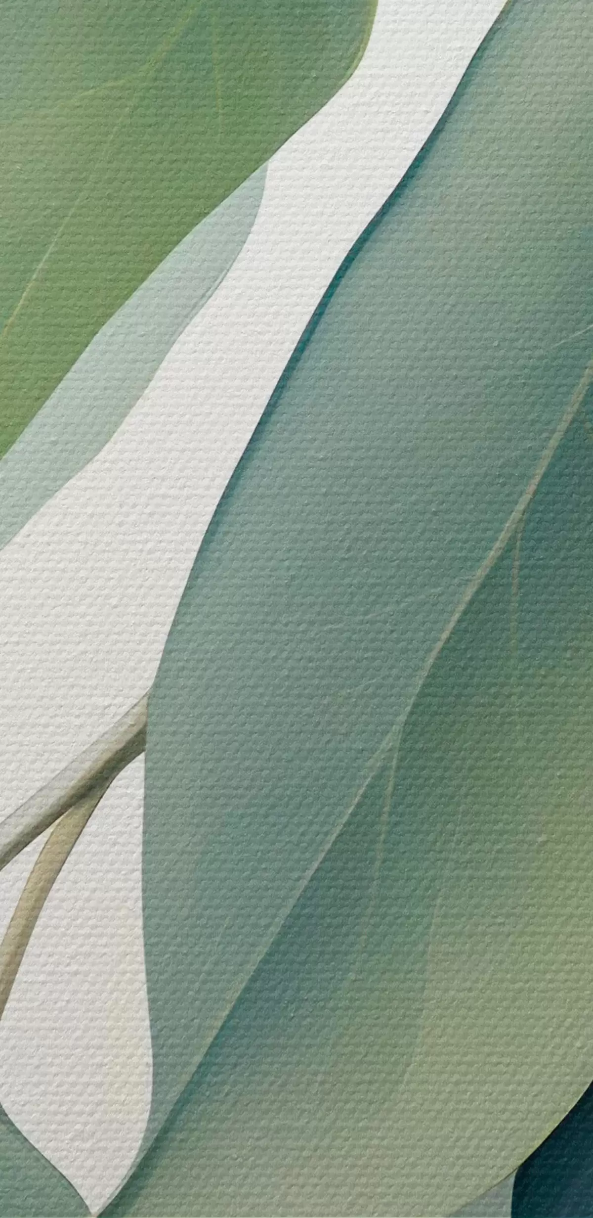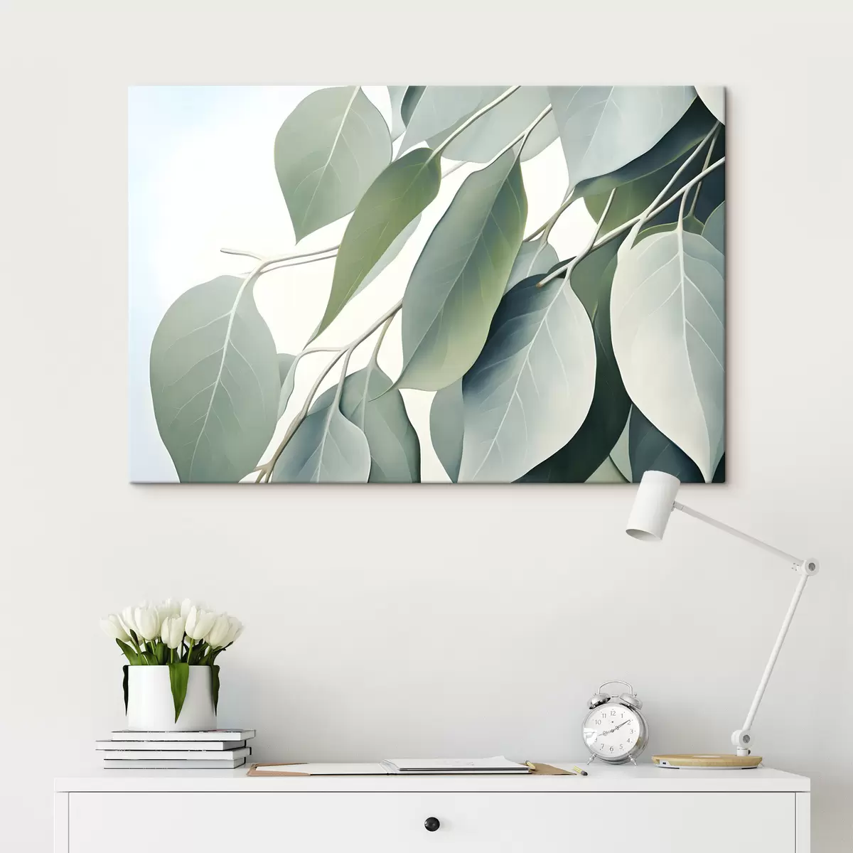 Paveikslas Eukalipto lapai su švelnia, prislopinta spalvų palete, raminančia ir natūralia estetika Nr s44410