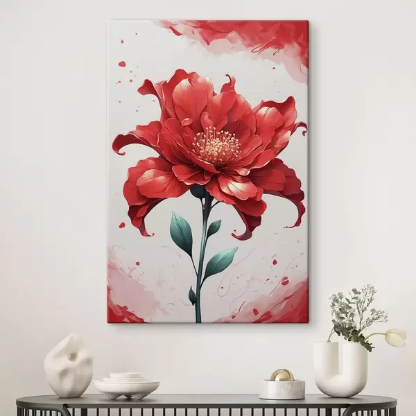 Paveikslas Raudona gėlė baltai raudoname fone Nr s44442