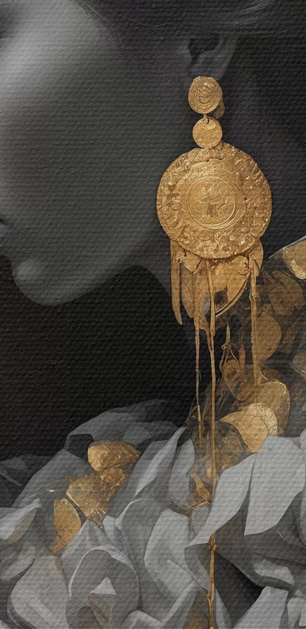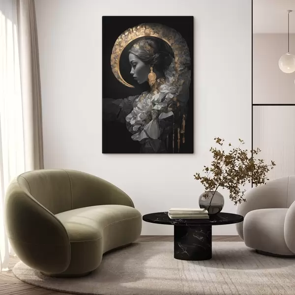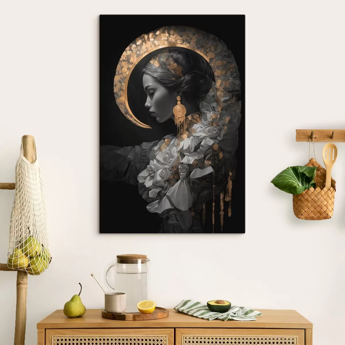 Paveikslas Mergaitė ir geltonas pusmėnulis juodame fone Nr s44449