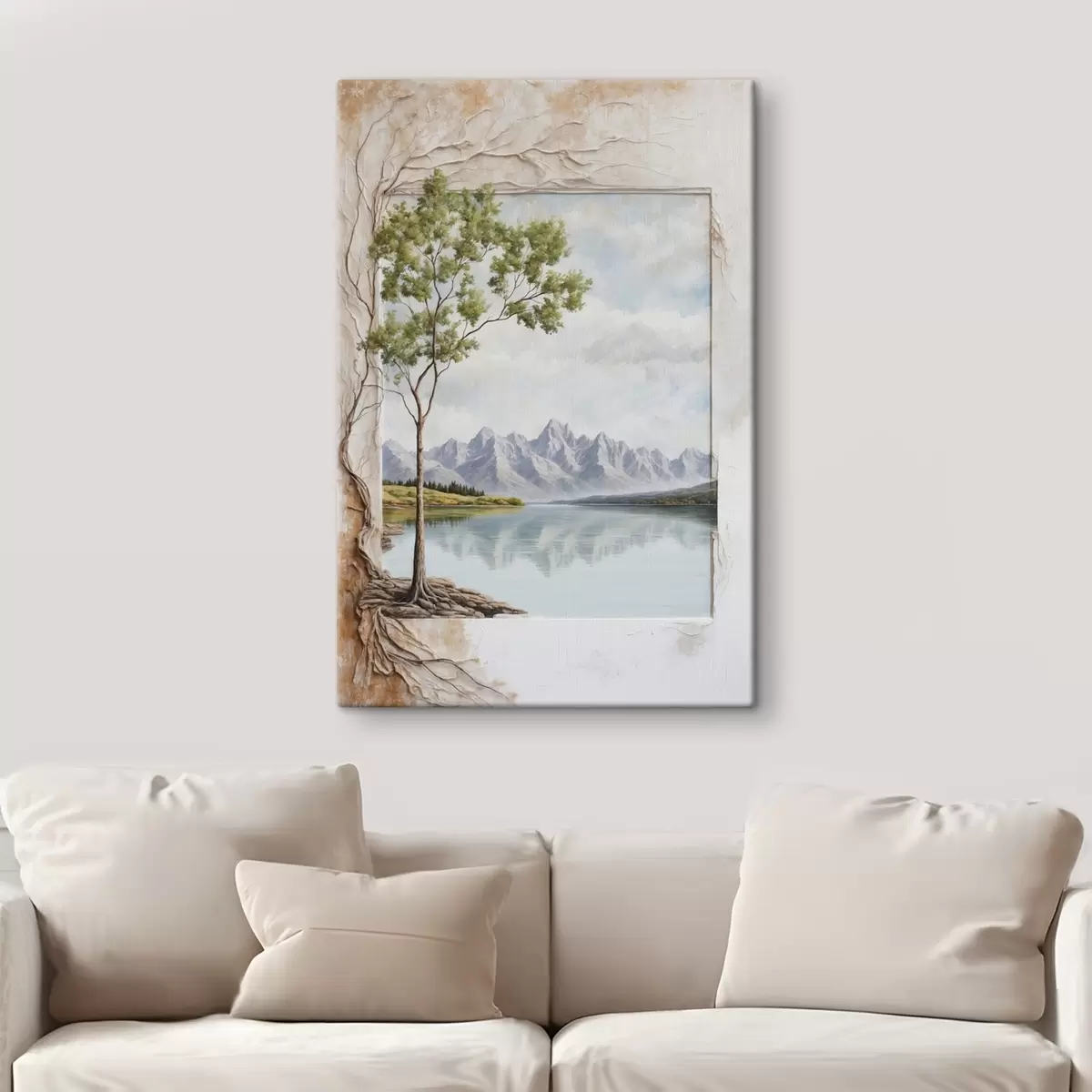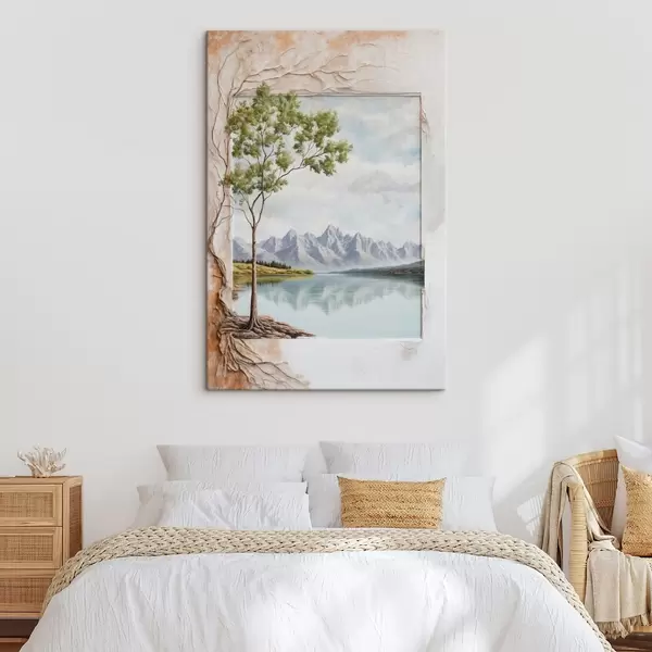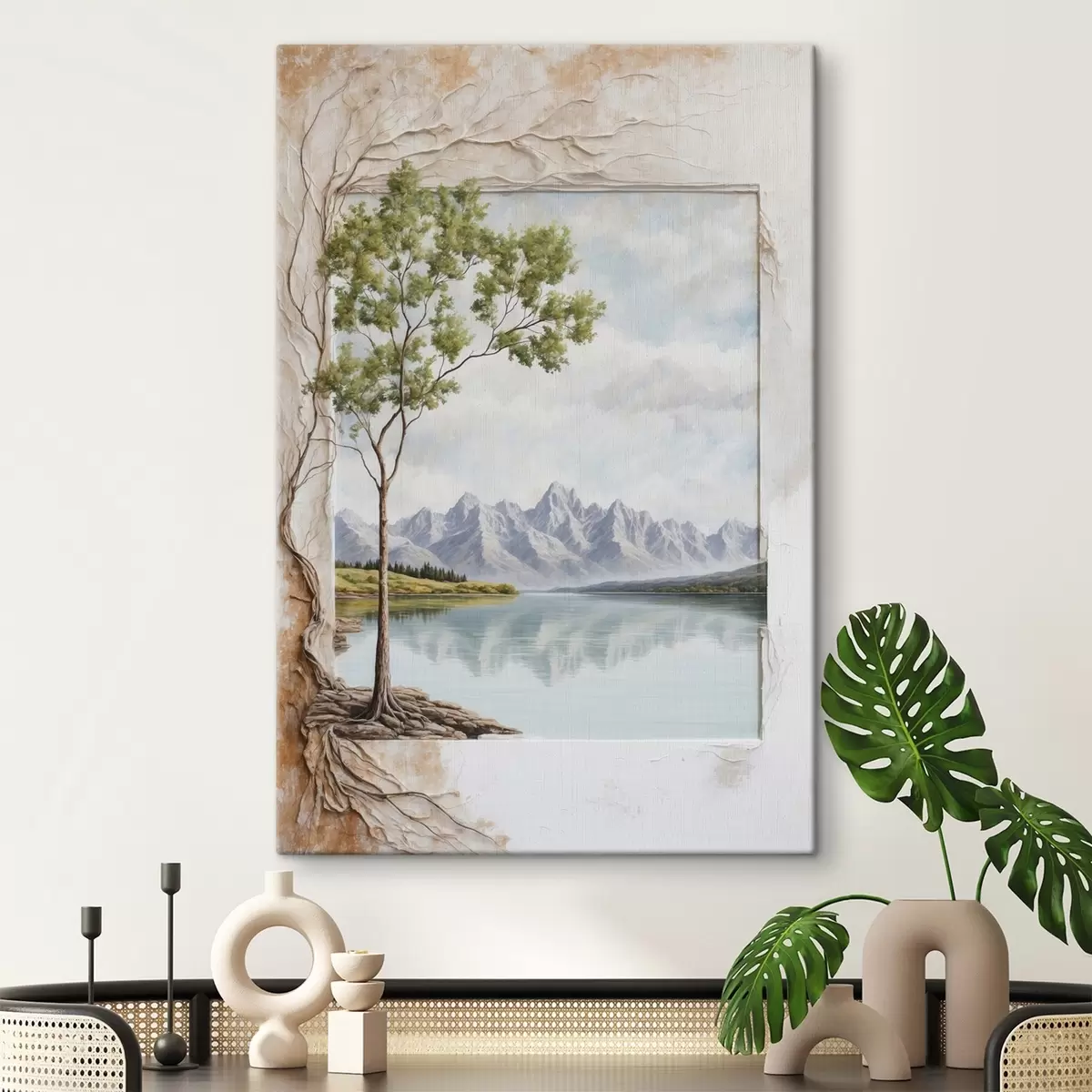 Paveikslas Vaizdas į ežerą ir snieguotus kalnus kadre Nr s44458
