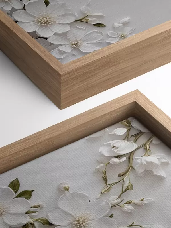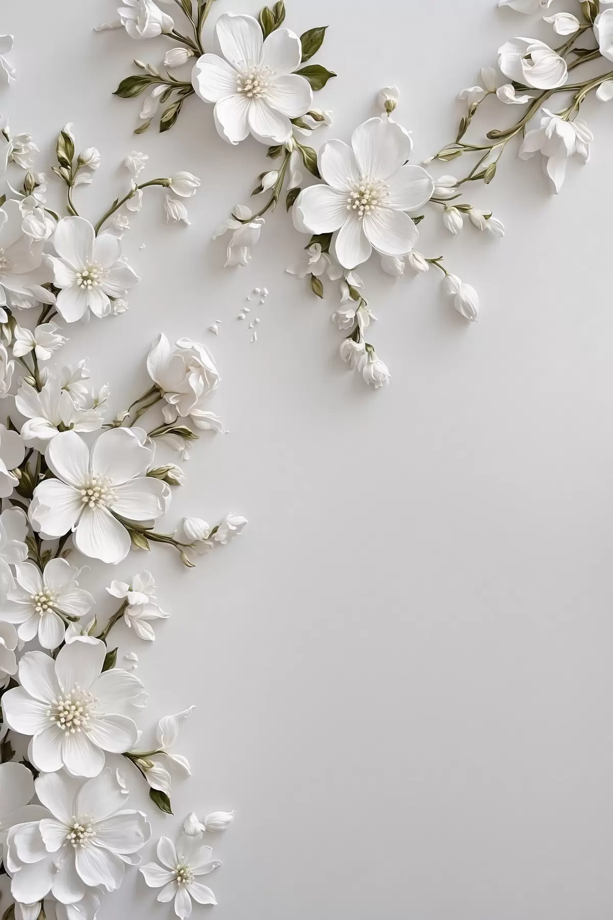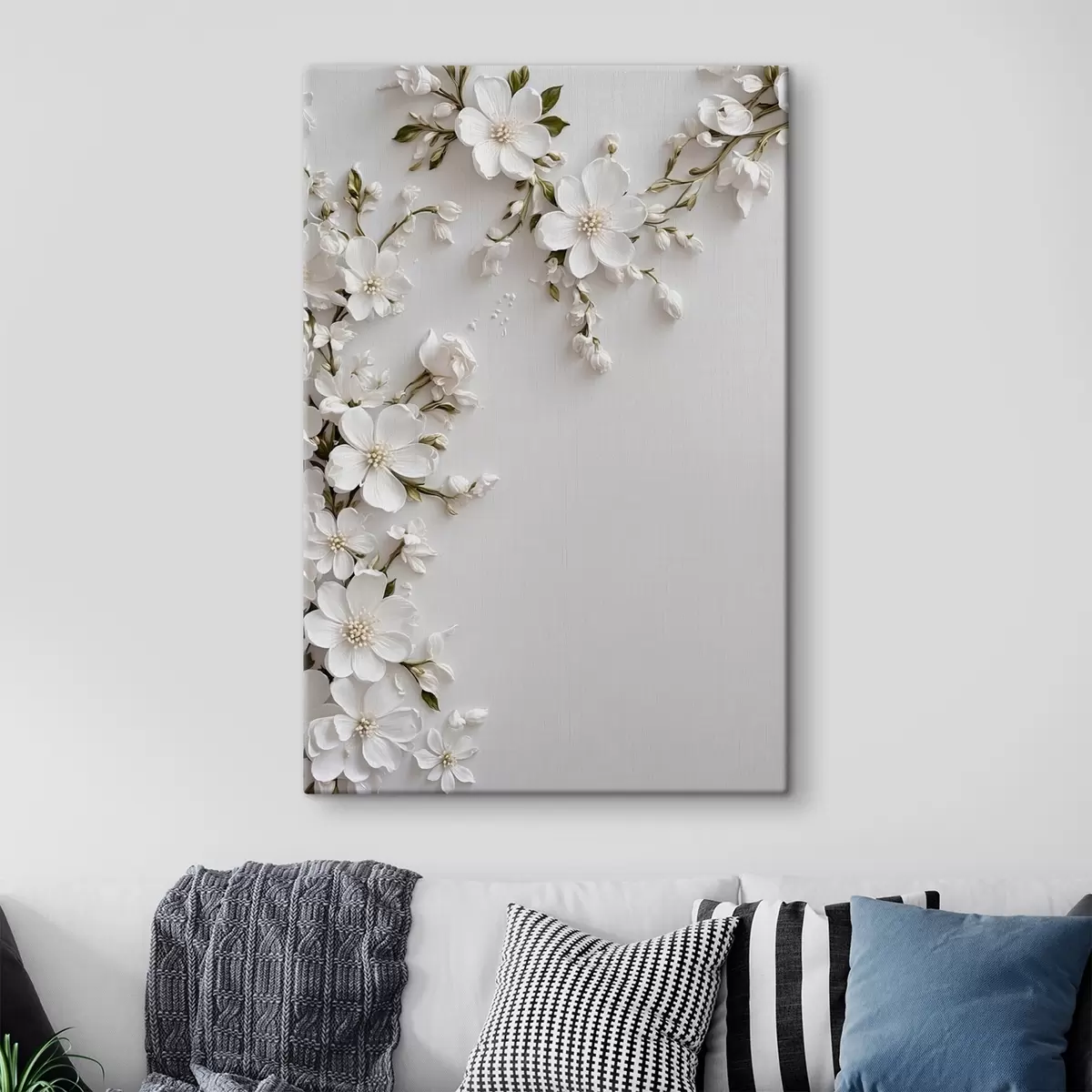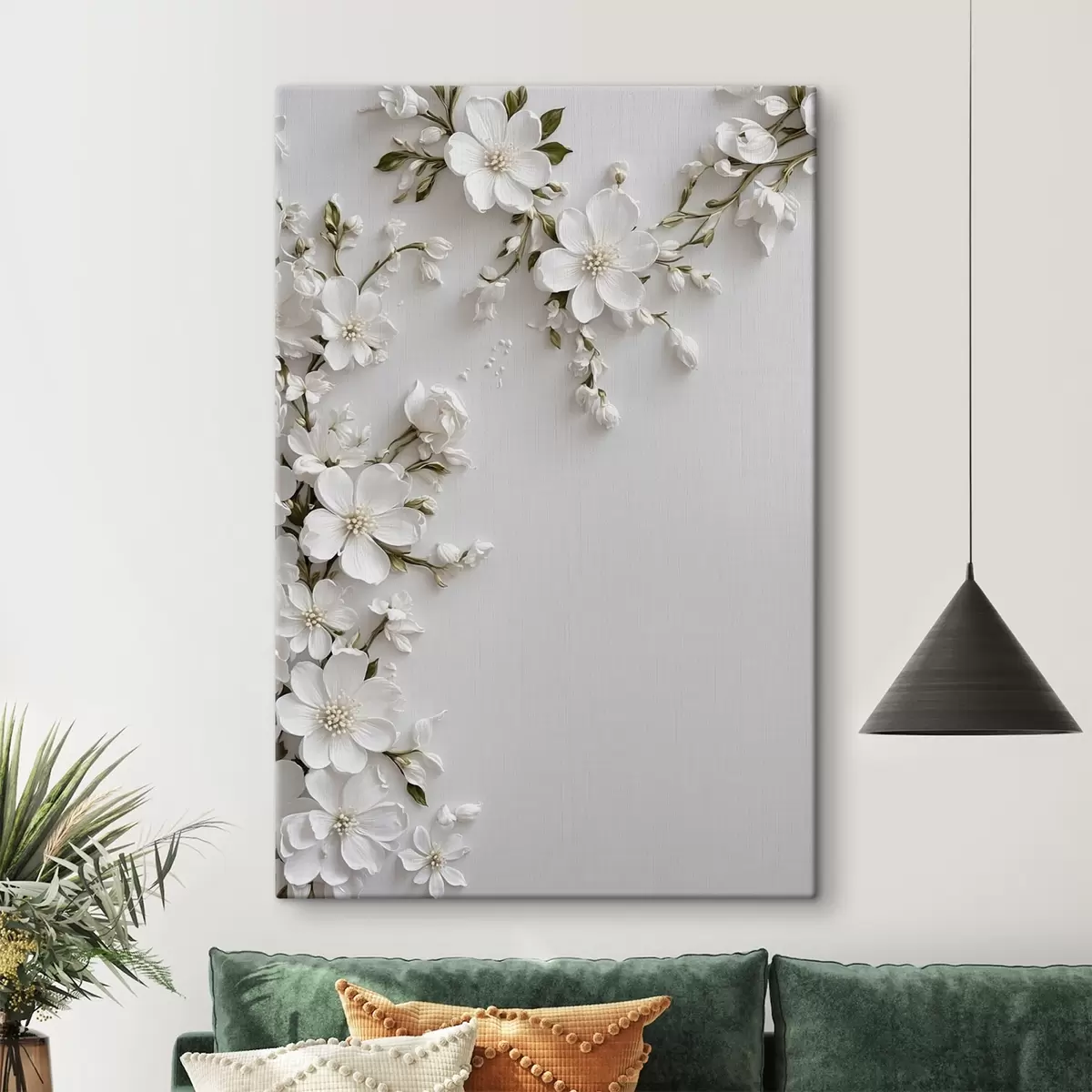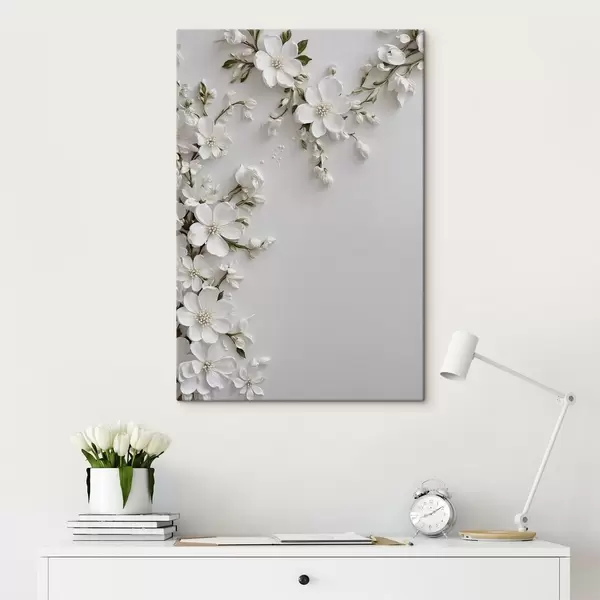 Paveikslas Baltos gėlės ant baltos sienos fone Nr s44466