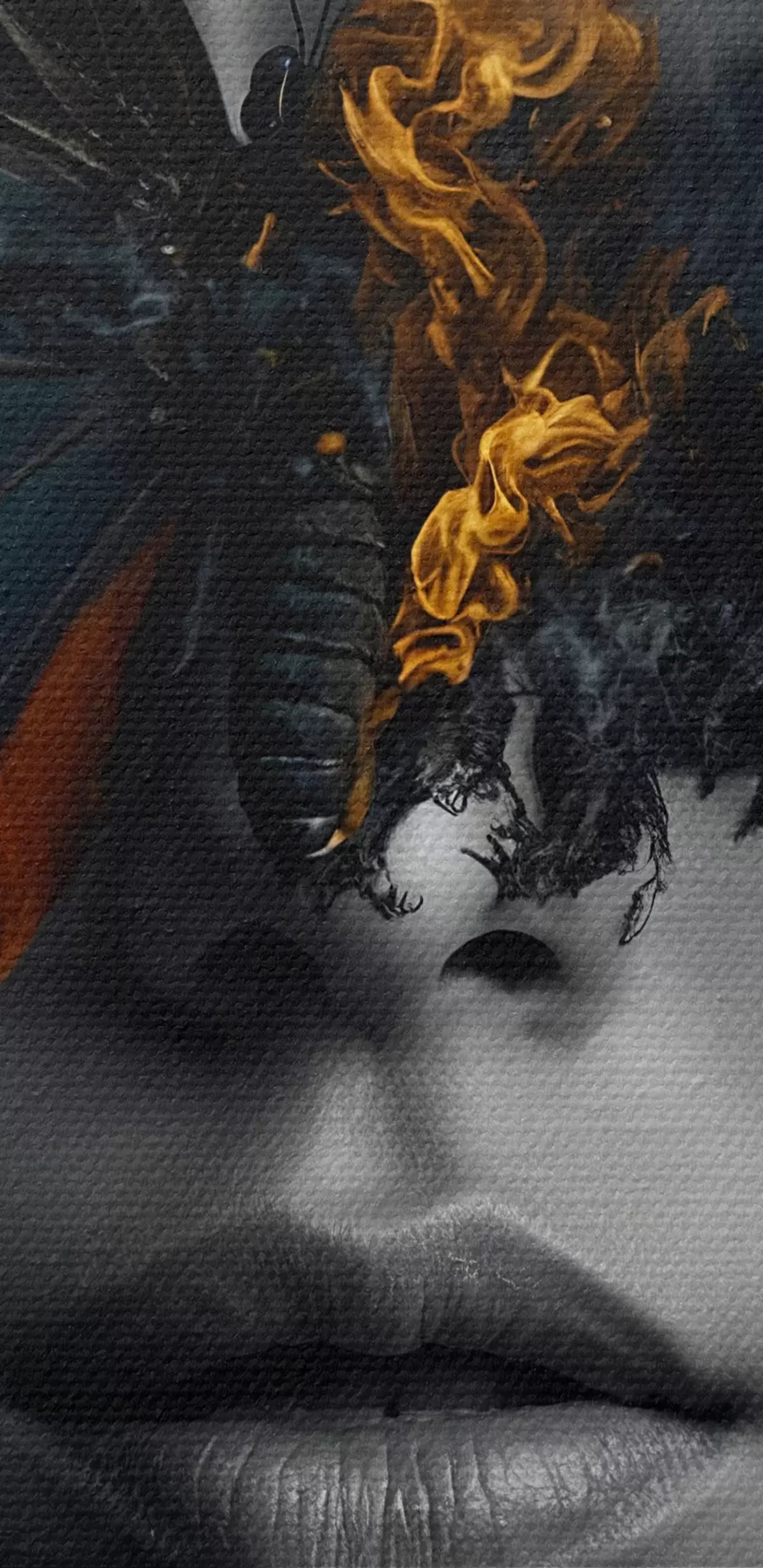 Paveikslas Degantis drugelis ant mergaitės veido Nr s44468